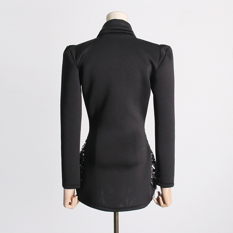 Spring Sexy V neck Rhinestone Sequ Stitching Design Short Dress for Women
