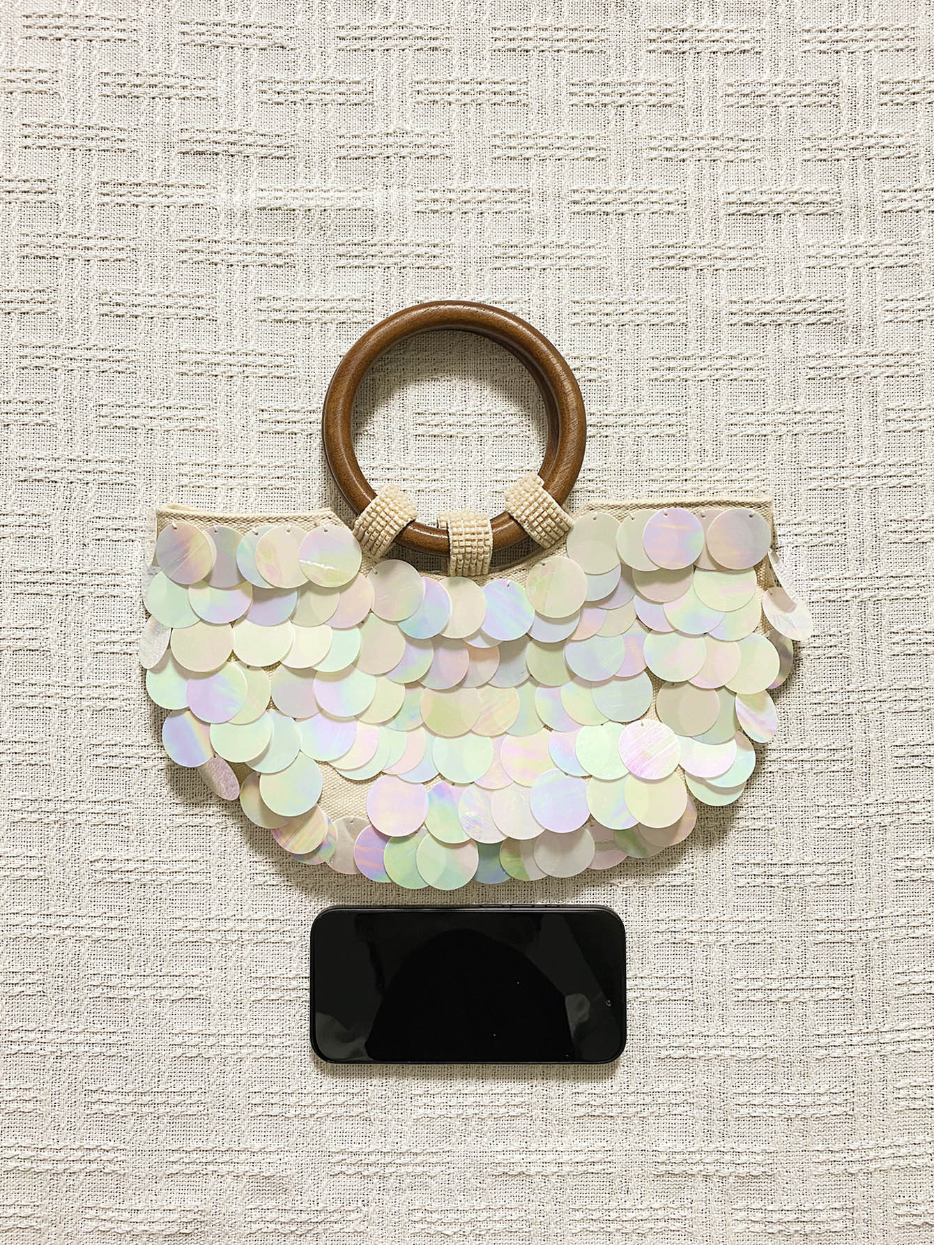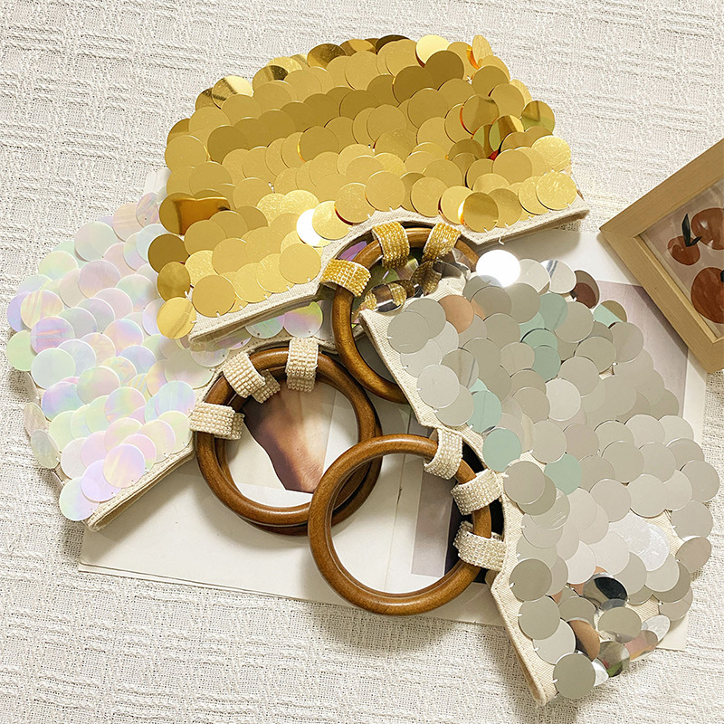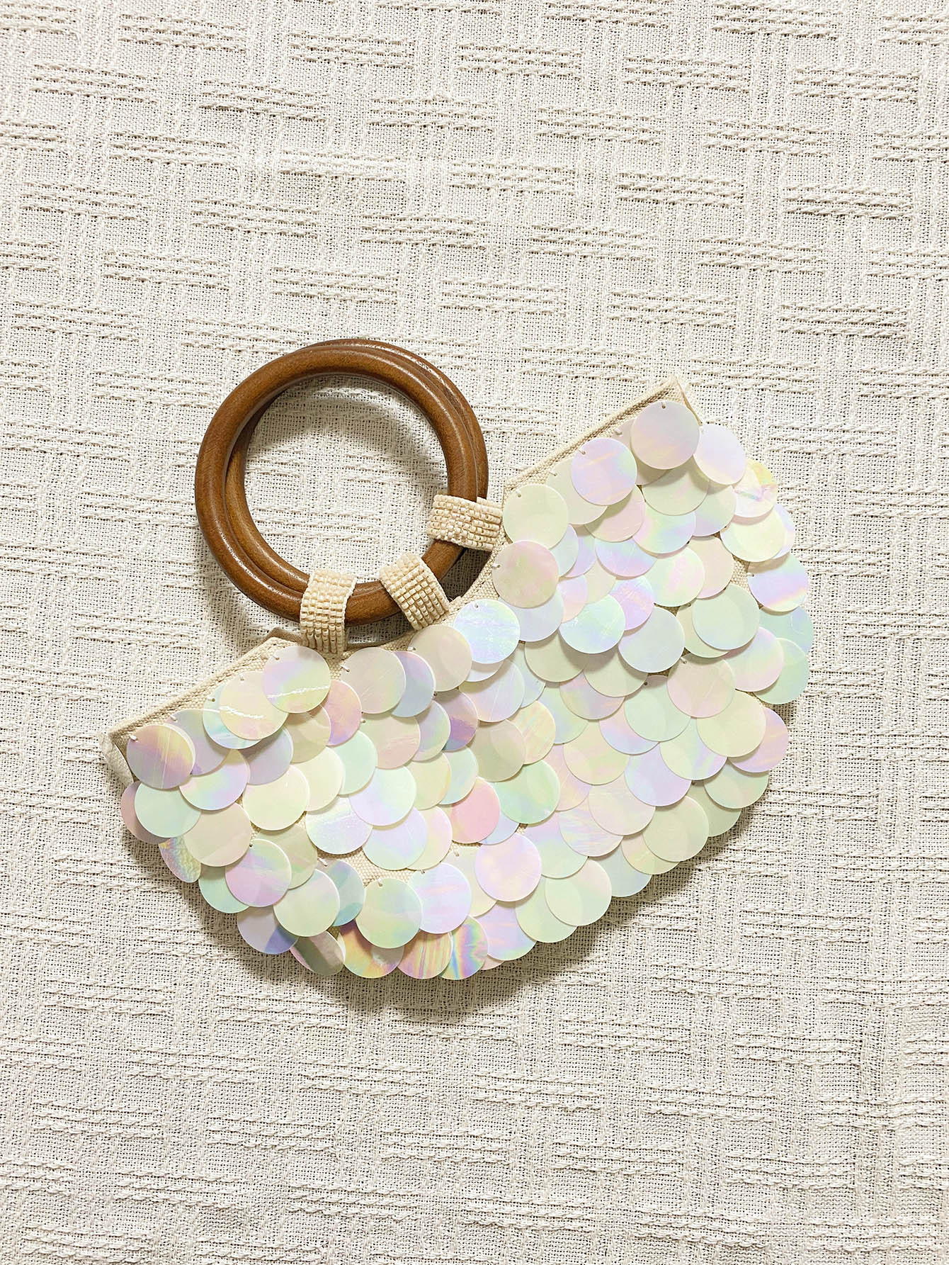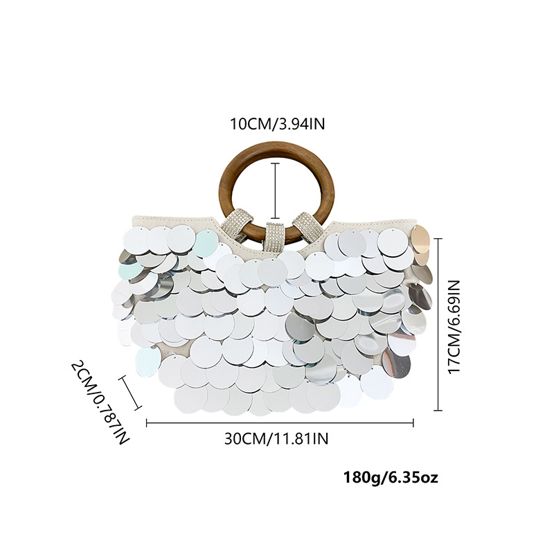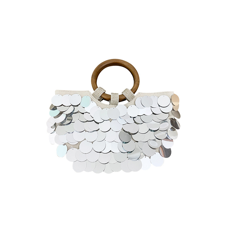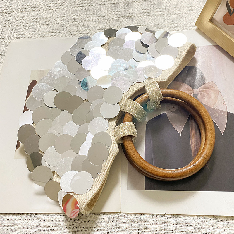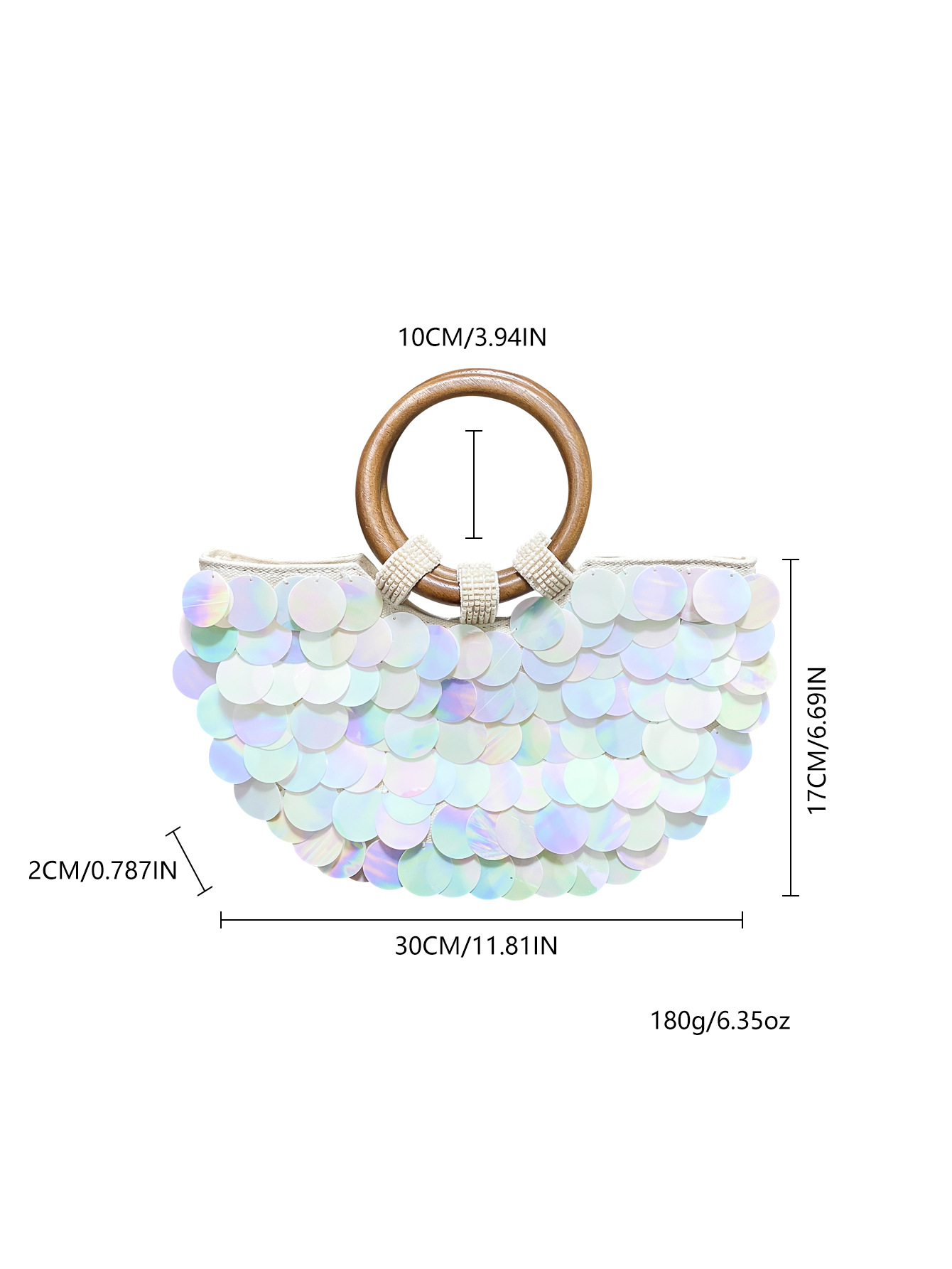 Spring Summer Colorful Shell Sequ Hand Woven Scale Silver Paillette Dinner Handbag