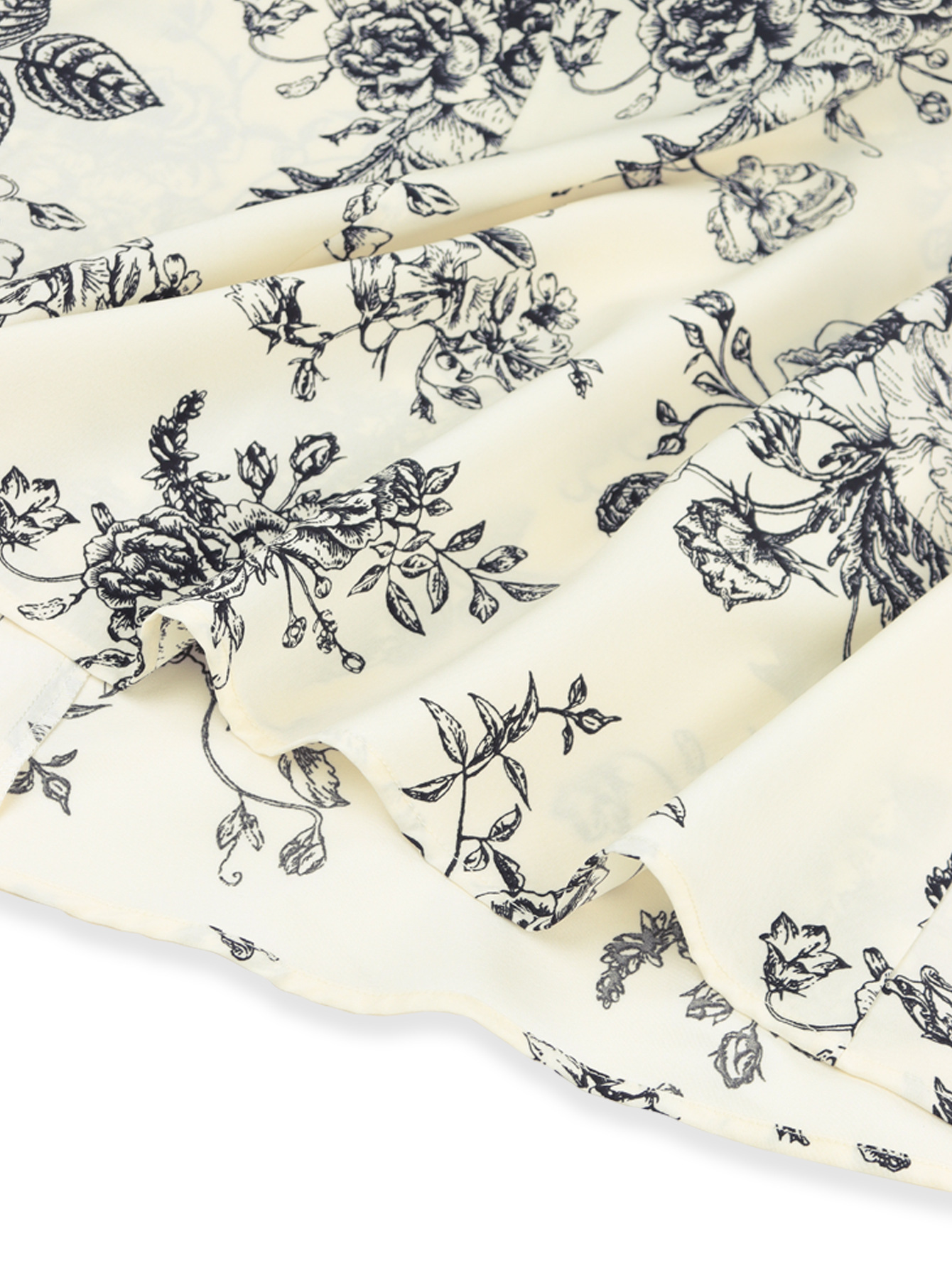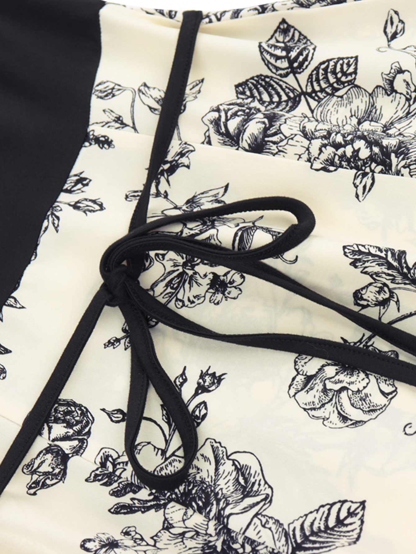 Square Collar Dress Women Elegant Floral Print Long Sleeve Waist Dress