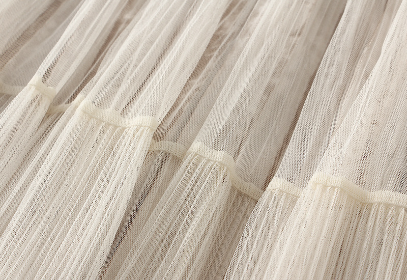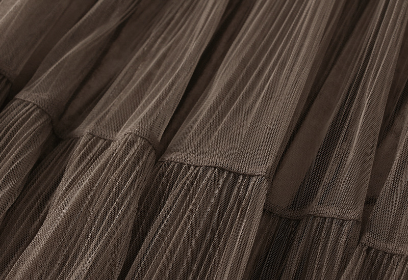 Stitching Pleated Mesh Velvet Skirt Women Autumn Winter High Waist Slimming A line Skirt Mid Length