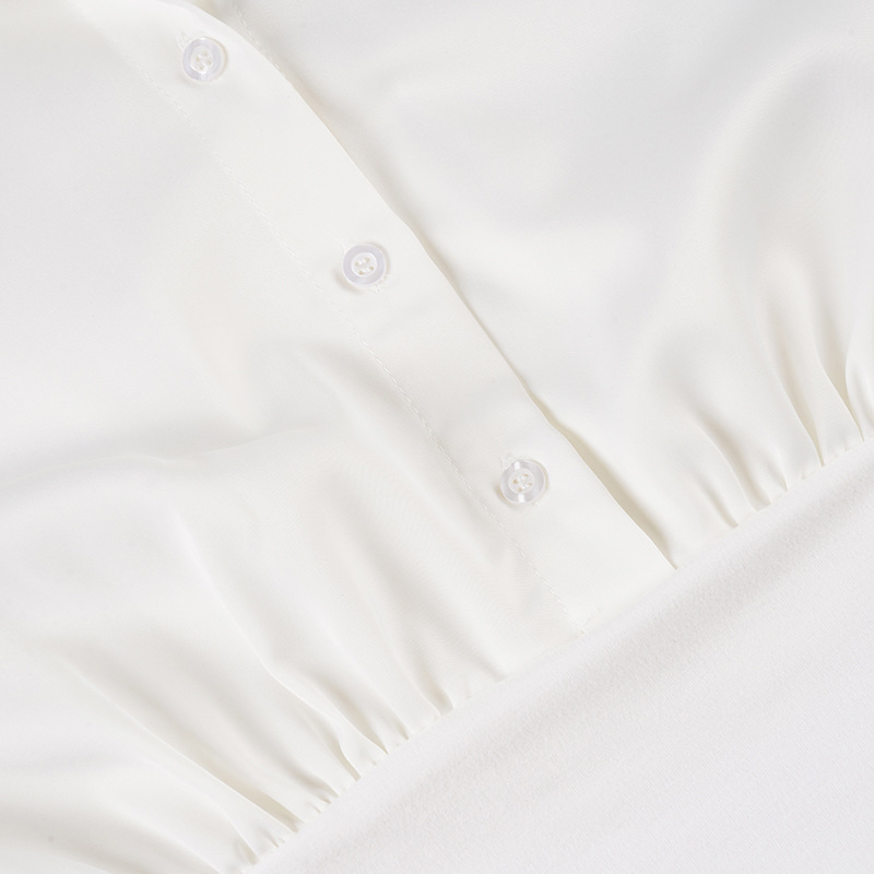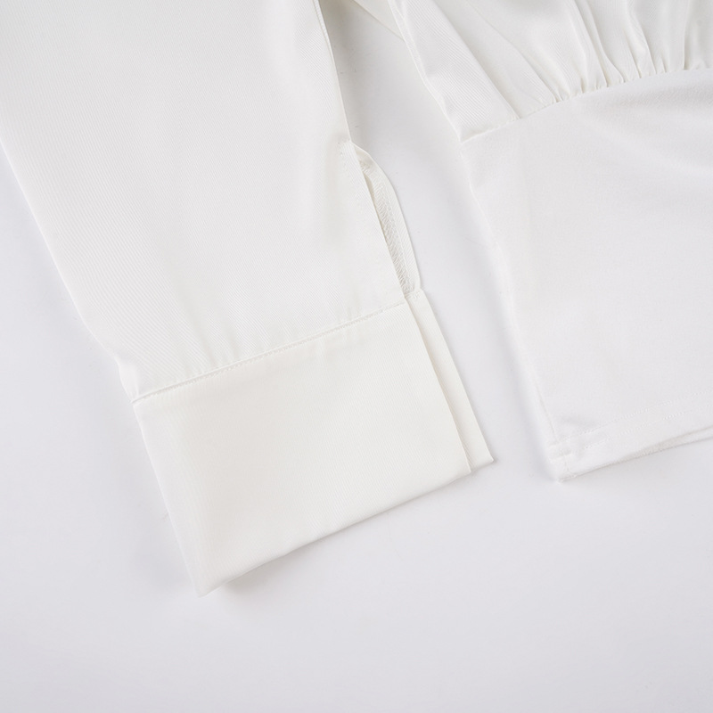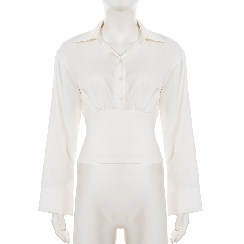 Summer Autumn Breasted Collared Sexy White Shirt Waist Controlled Slimming Long Sleeve T shirt