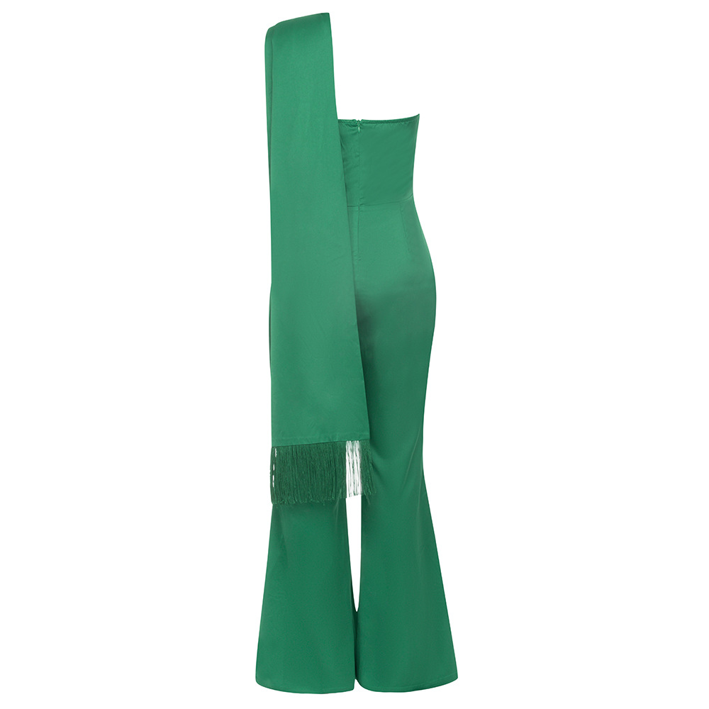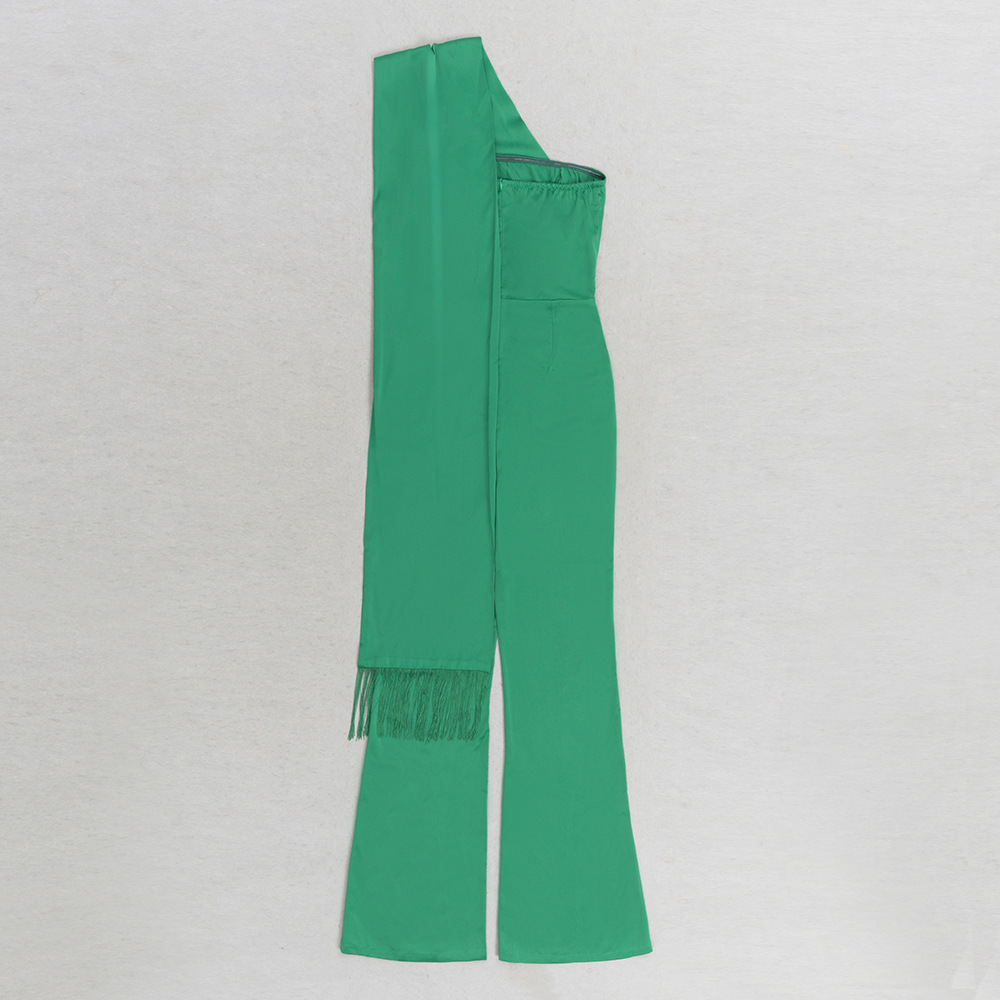 Summer Sexy Pleated Ribbon Tassels Slim Fit Oblique Shoulder Jumpsuit