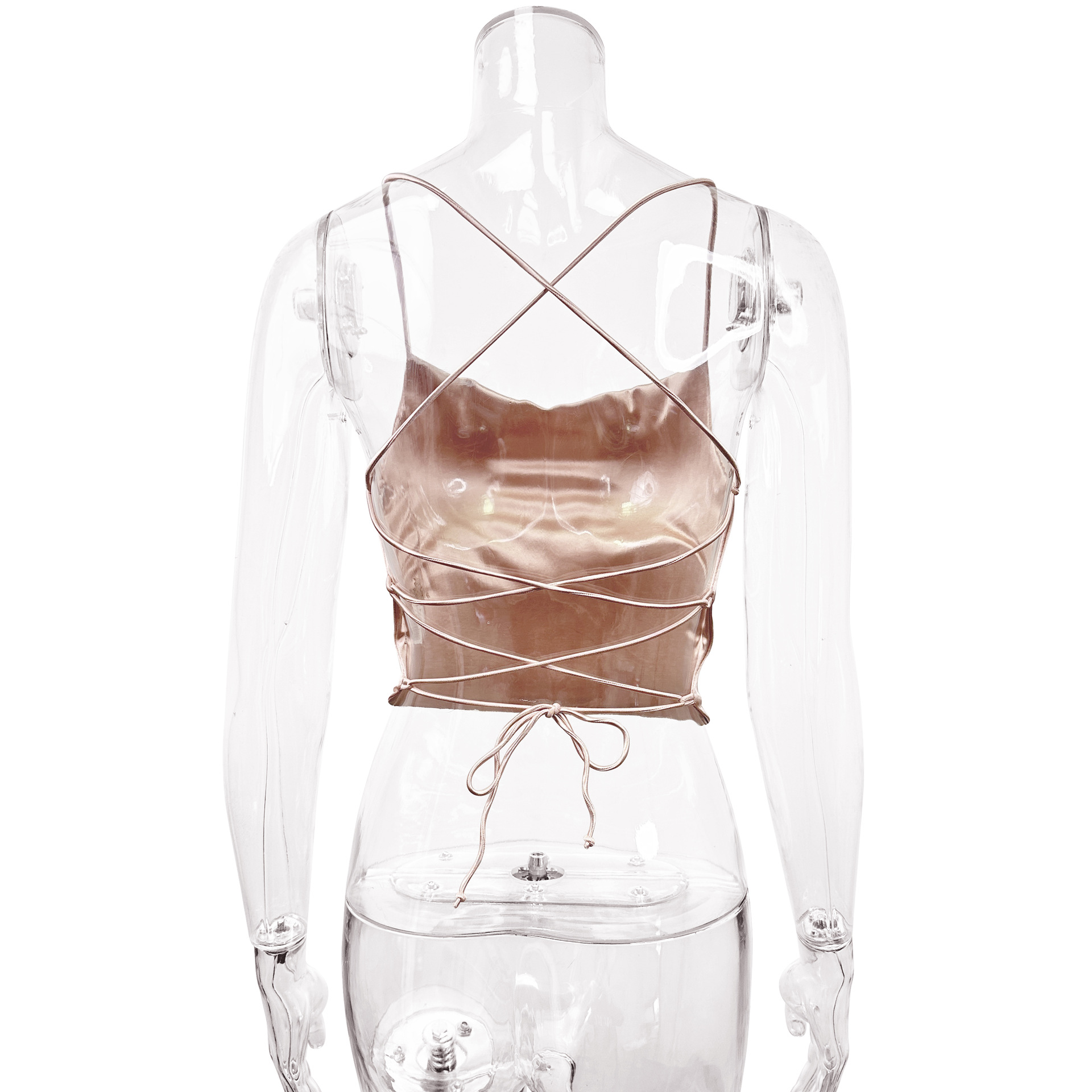 Summer V neck Strap Women Clothing Sexy Lace up Backless Top