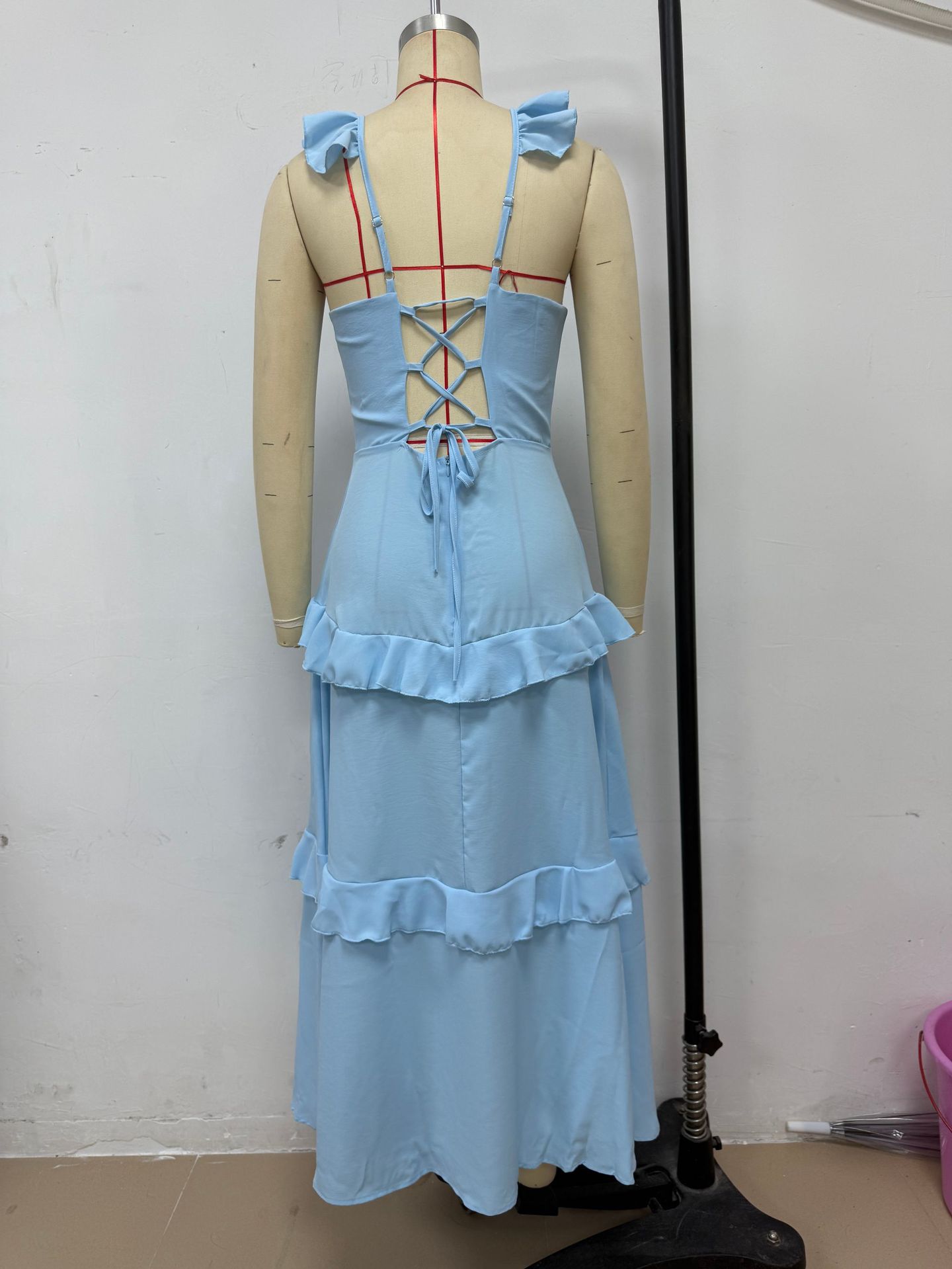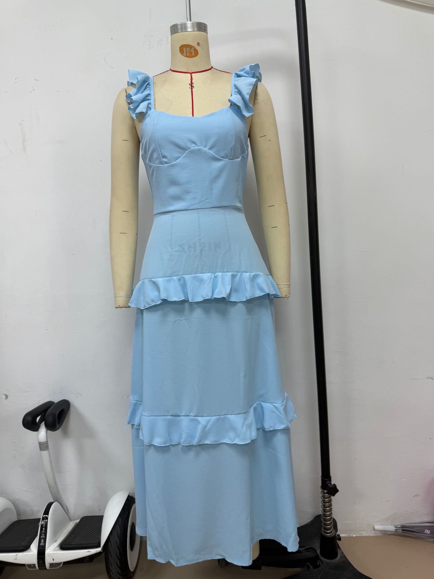Summer Women Clothing Solid Color Elegant Graceful Ruffled Dress