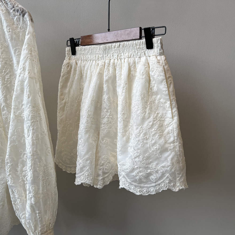 Tencel Embroidery Long Sleeve Set Women Summer Elegant Embroidery Top Shorts Two Piece Set