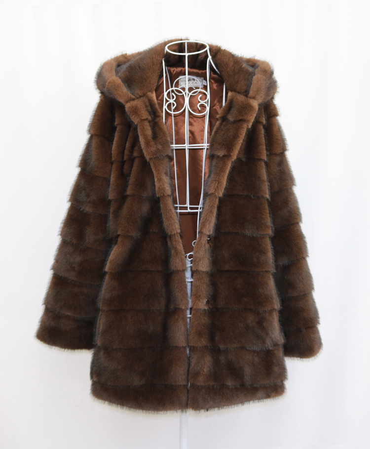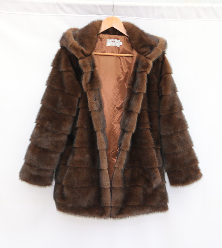 Women Artificial Mink Hair Fur Coat Mid Length Hooded Coat Fur Casual Warm Loose Office