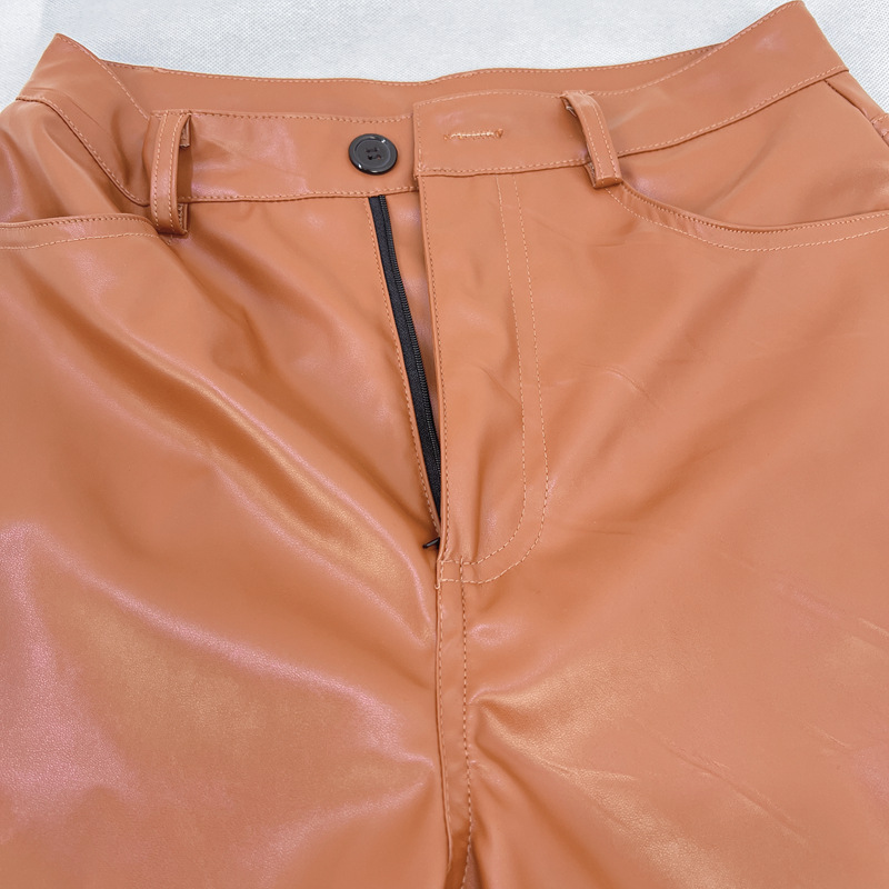 Women Clothing Autumn Winter High Waist Faux Leather Wide Leg Straight Casual Leather Pants Retro Trousers Women