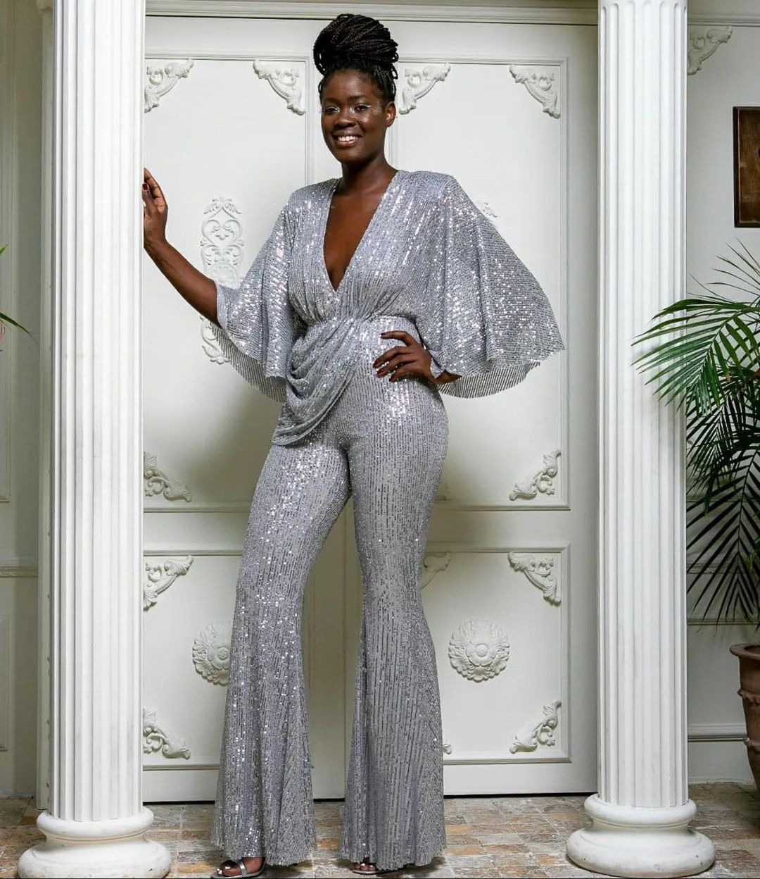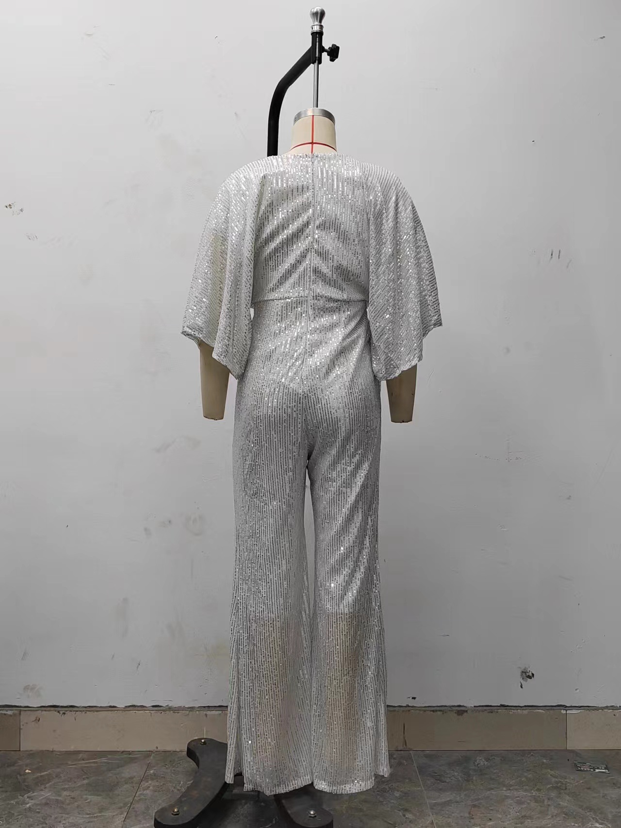 Women Clothing Direct Sequ Sexy Deep V Plunge neck Backless Jumpsuit Trousers