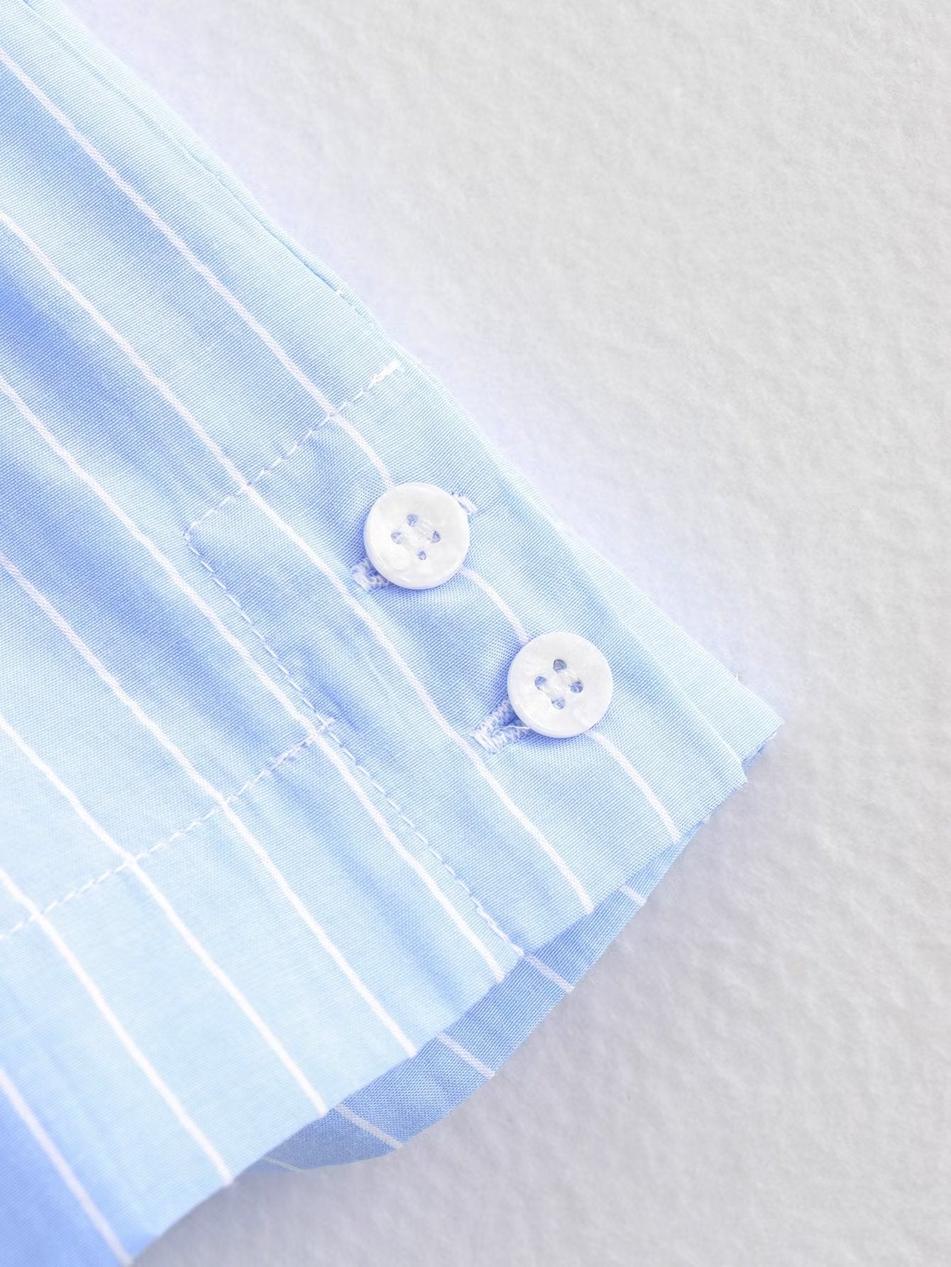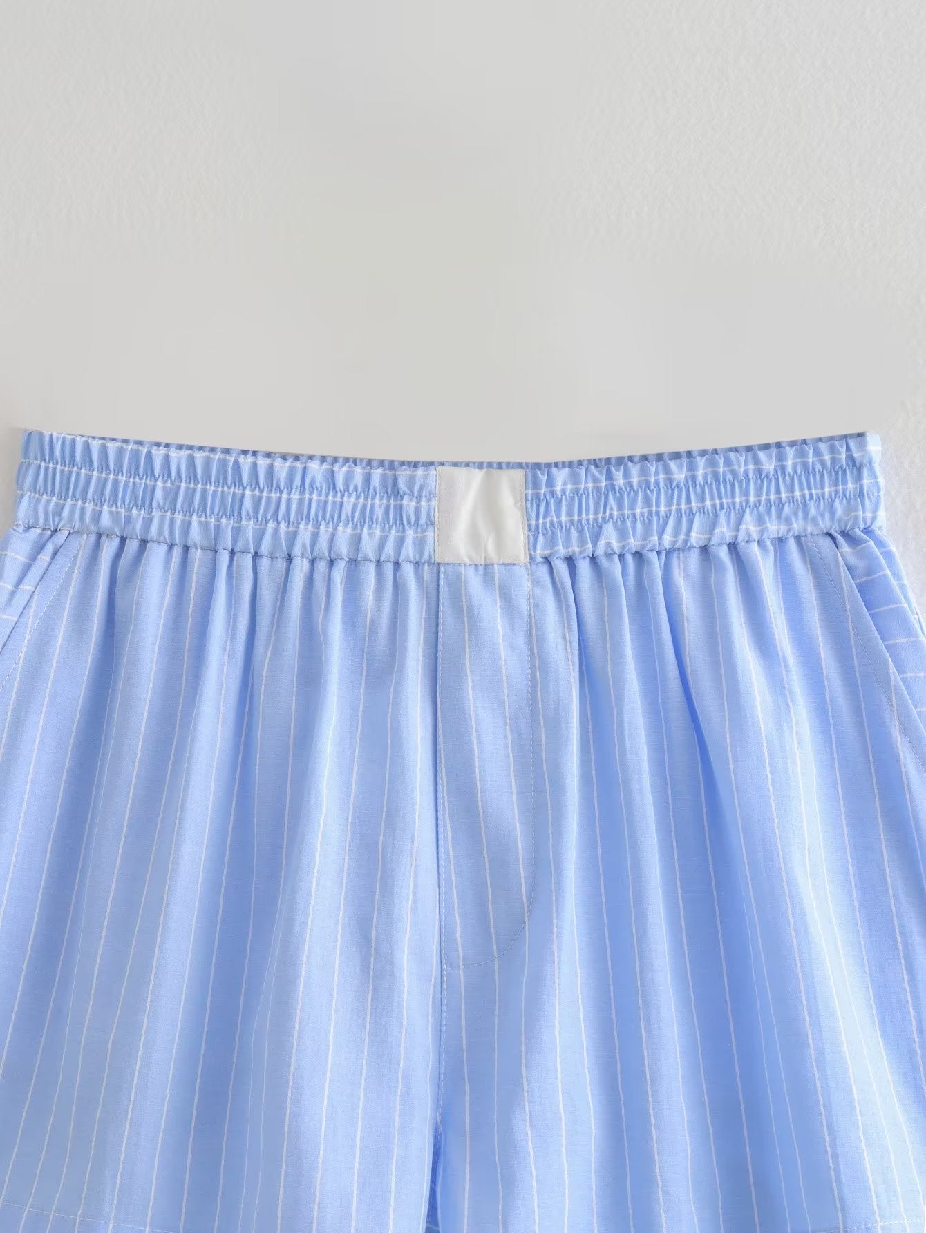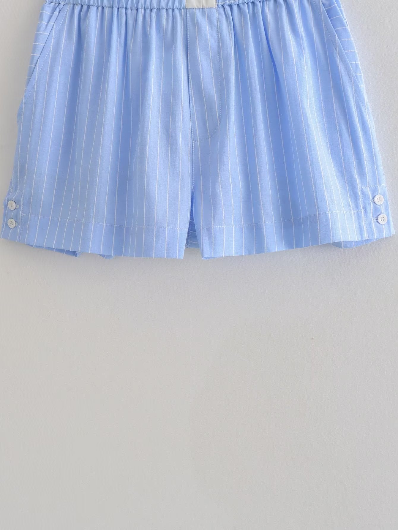 Women Clothing French Striped Poplin Short Shirt Contrast Color Shorts