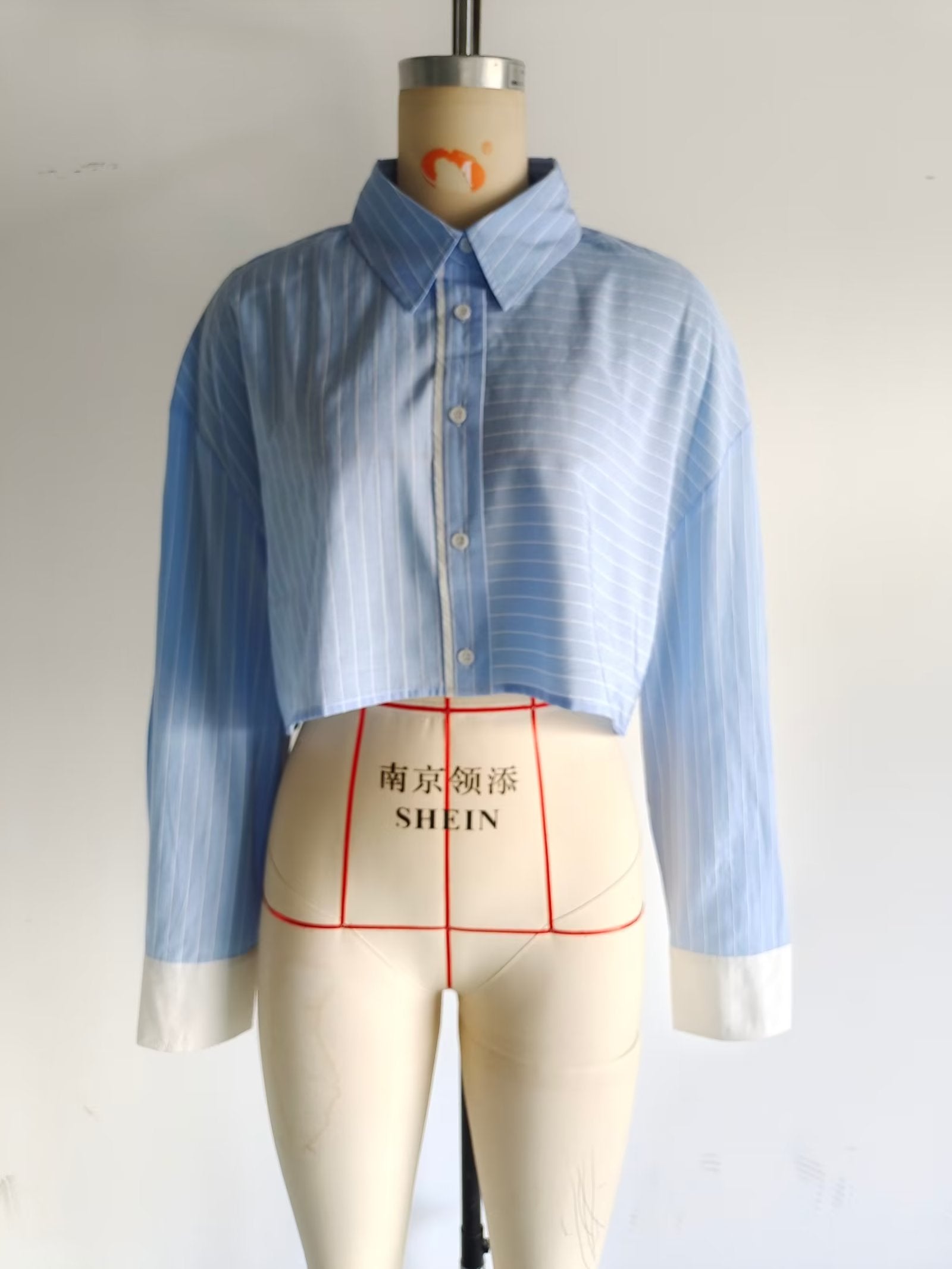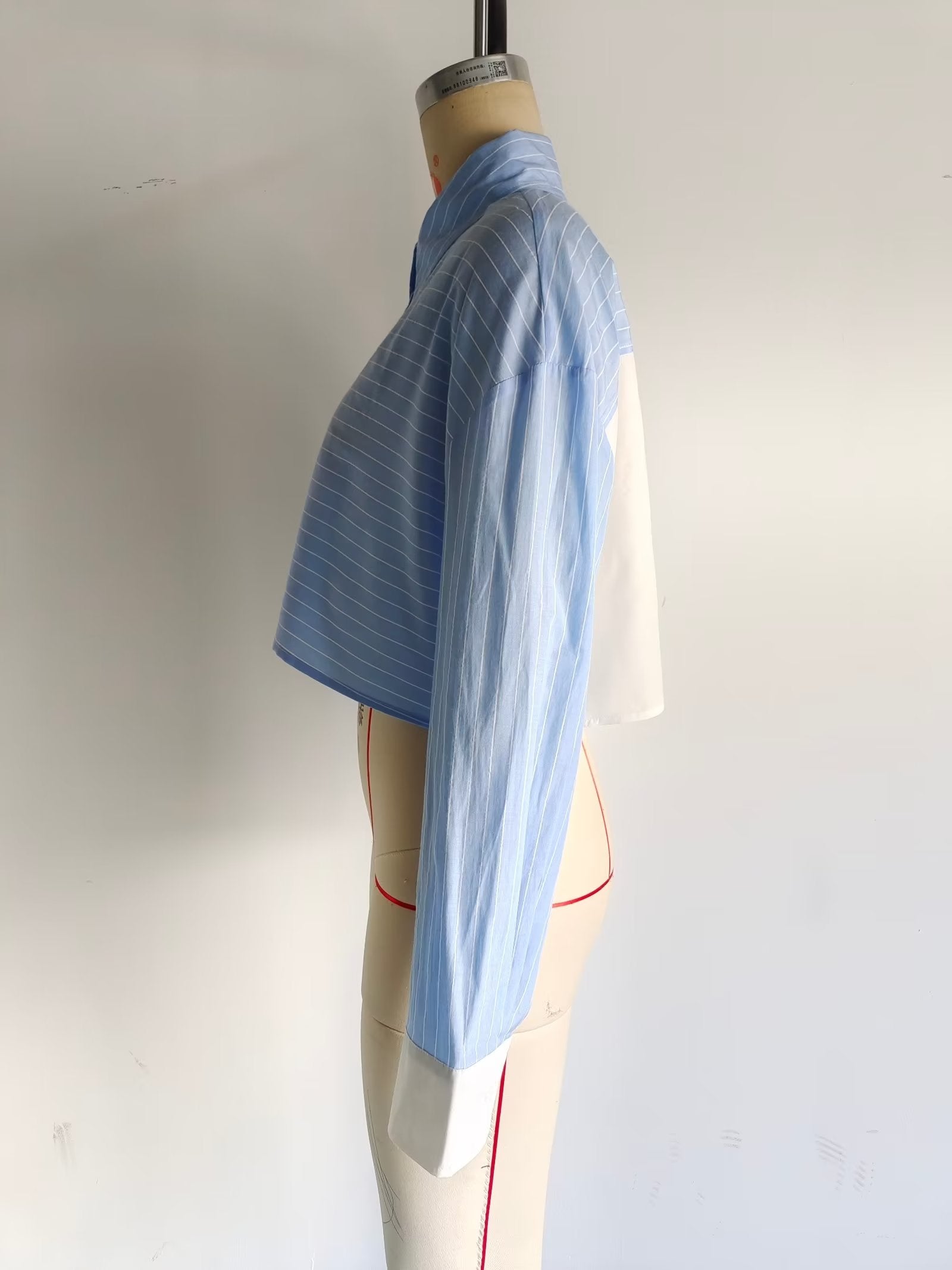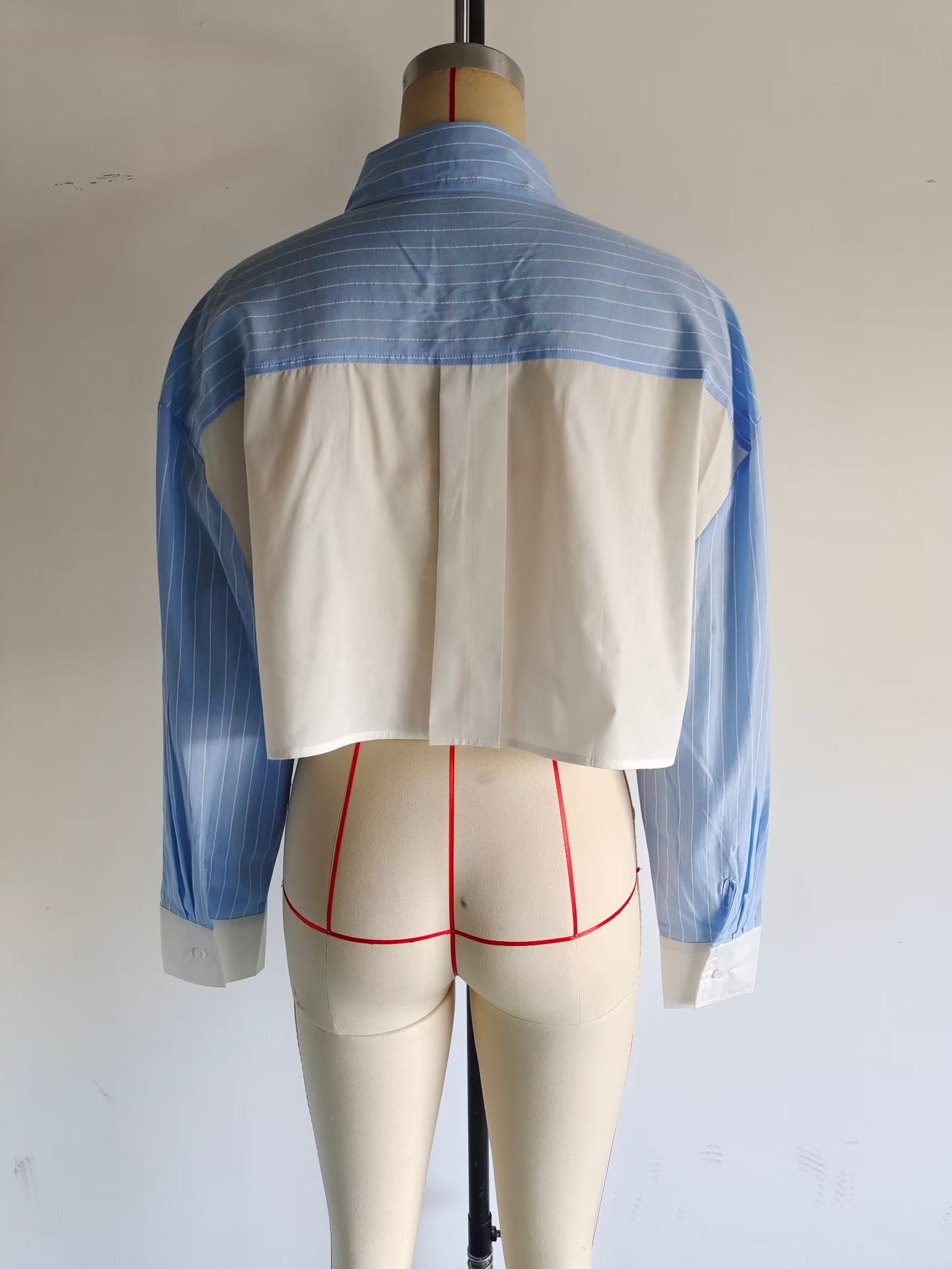 Women Clothing French Striped Poplin Short Shirt Contrast Color Shorts