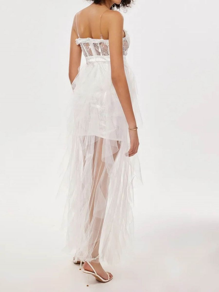 Women Clothing Mesh Stitching Sexy Strap Lace See through Wedding Dress Wedding Dress