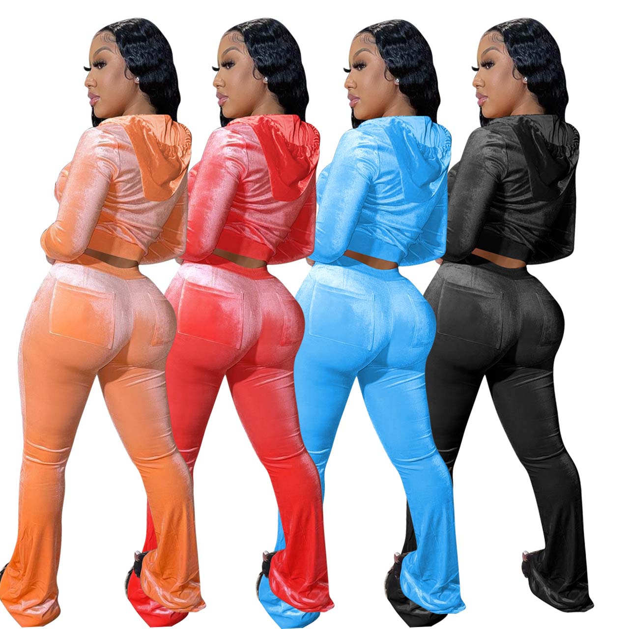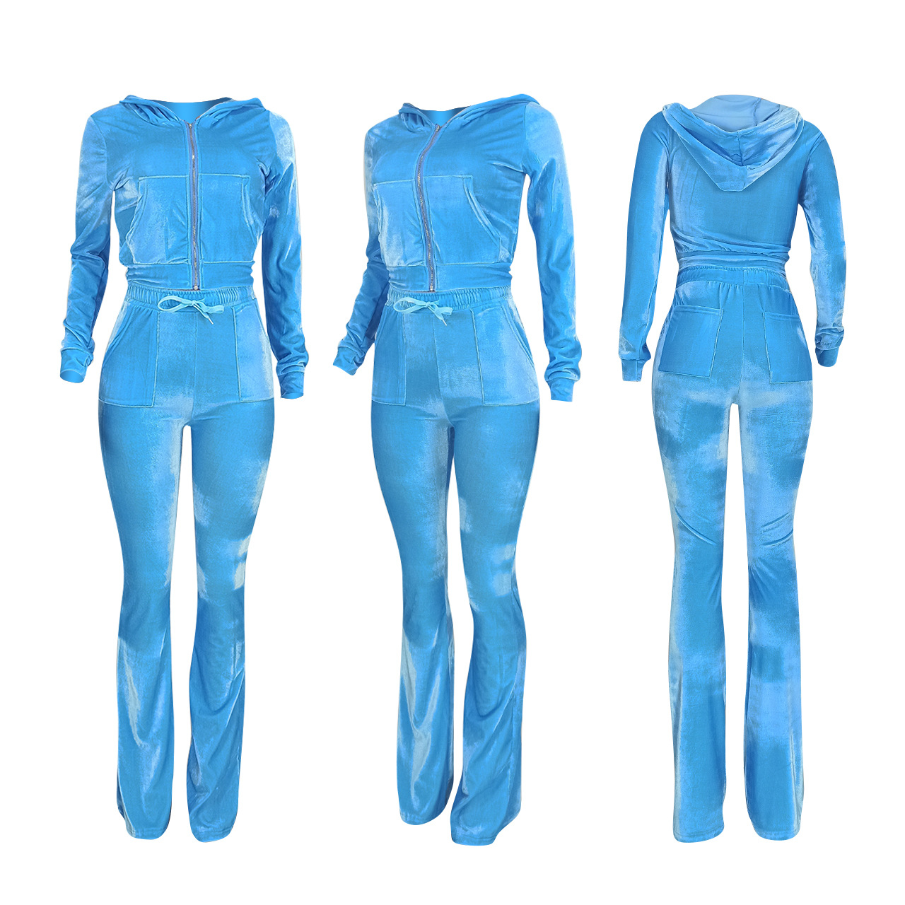 Women Clothing New Solid Color Gold Velvet Casual Hat Wide Leg Pants Two-Piece Set