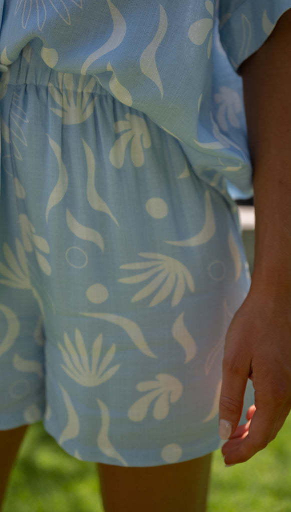 Women Clothing Polo Collar Floral Print Mid Length Sleeves Top Shorts Set