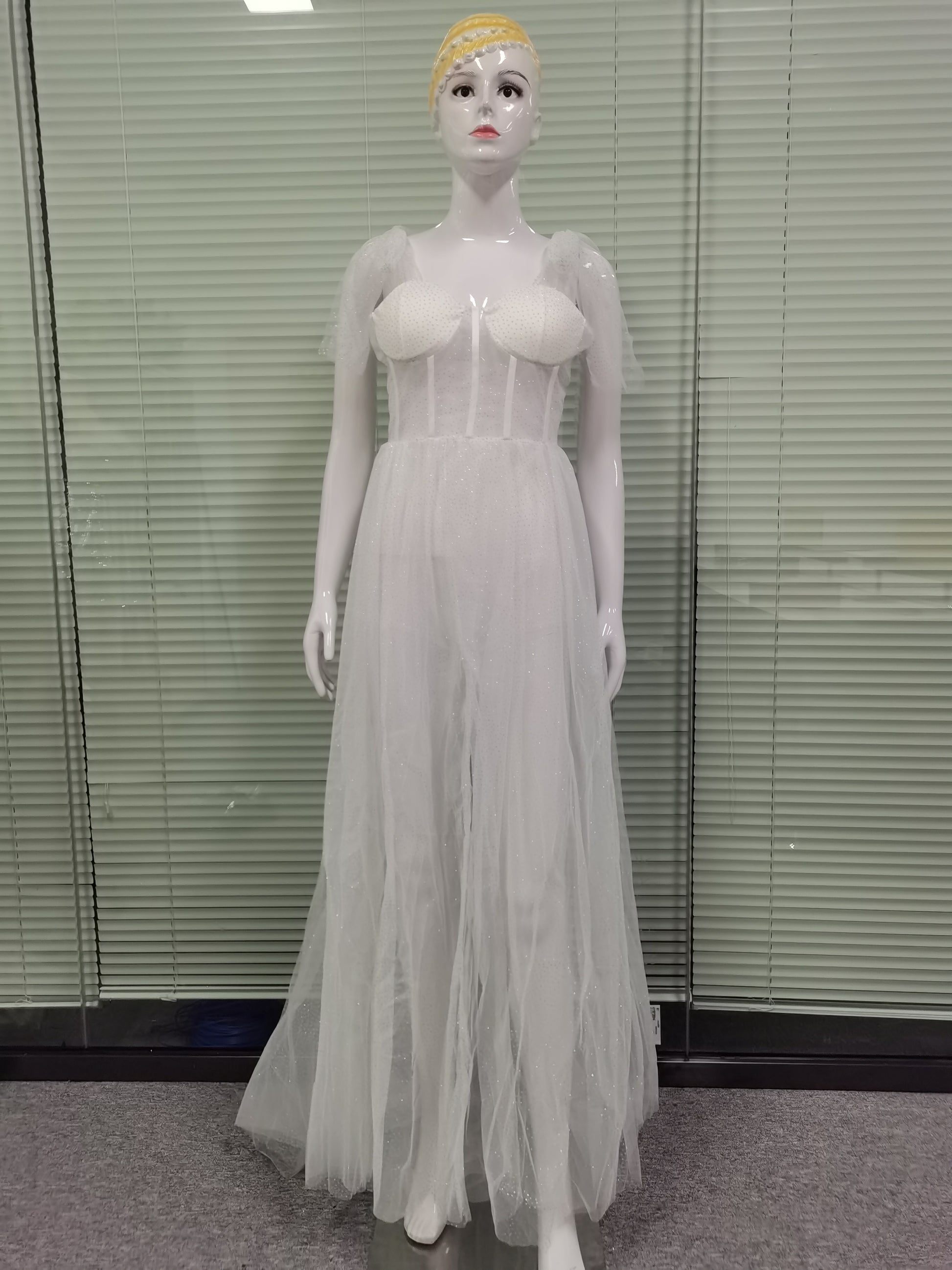 Women Clothing Sexy Sling Backless See-through Wedding Dress Split Dress