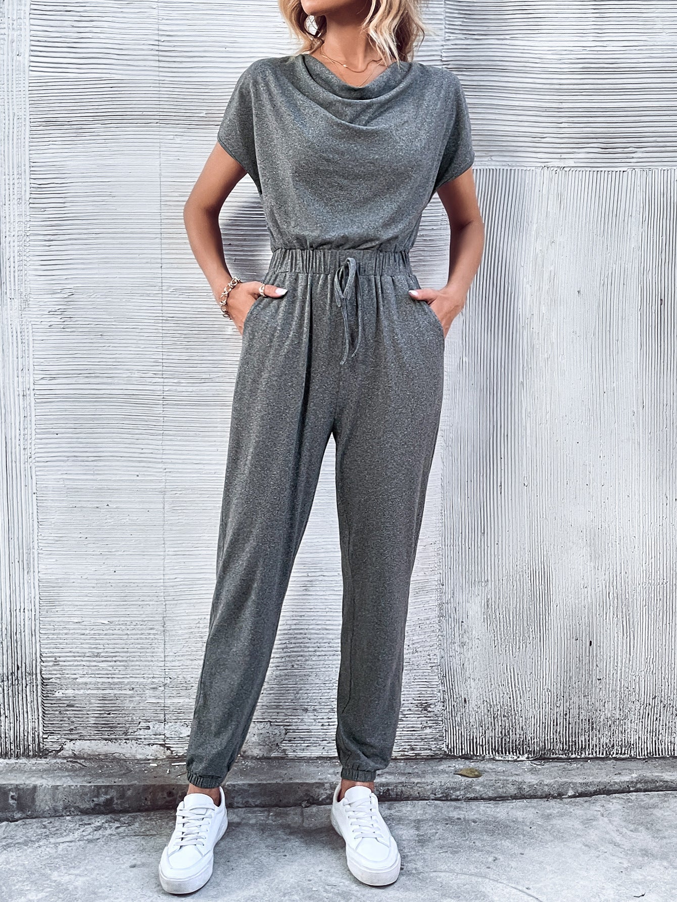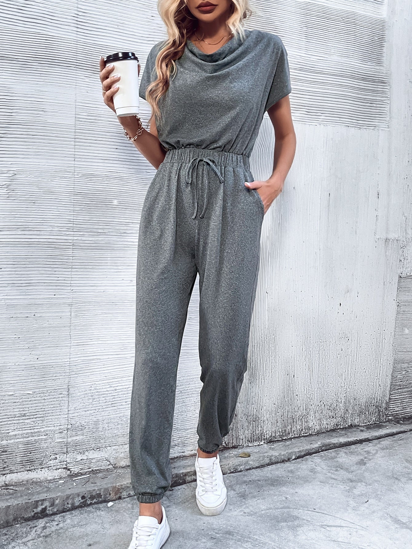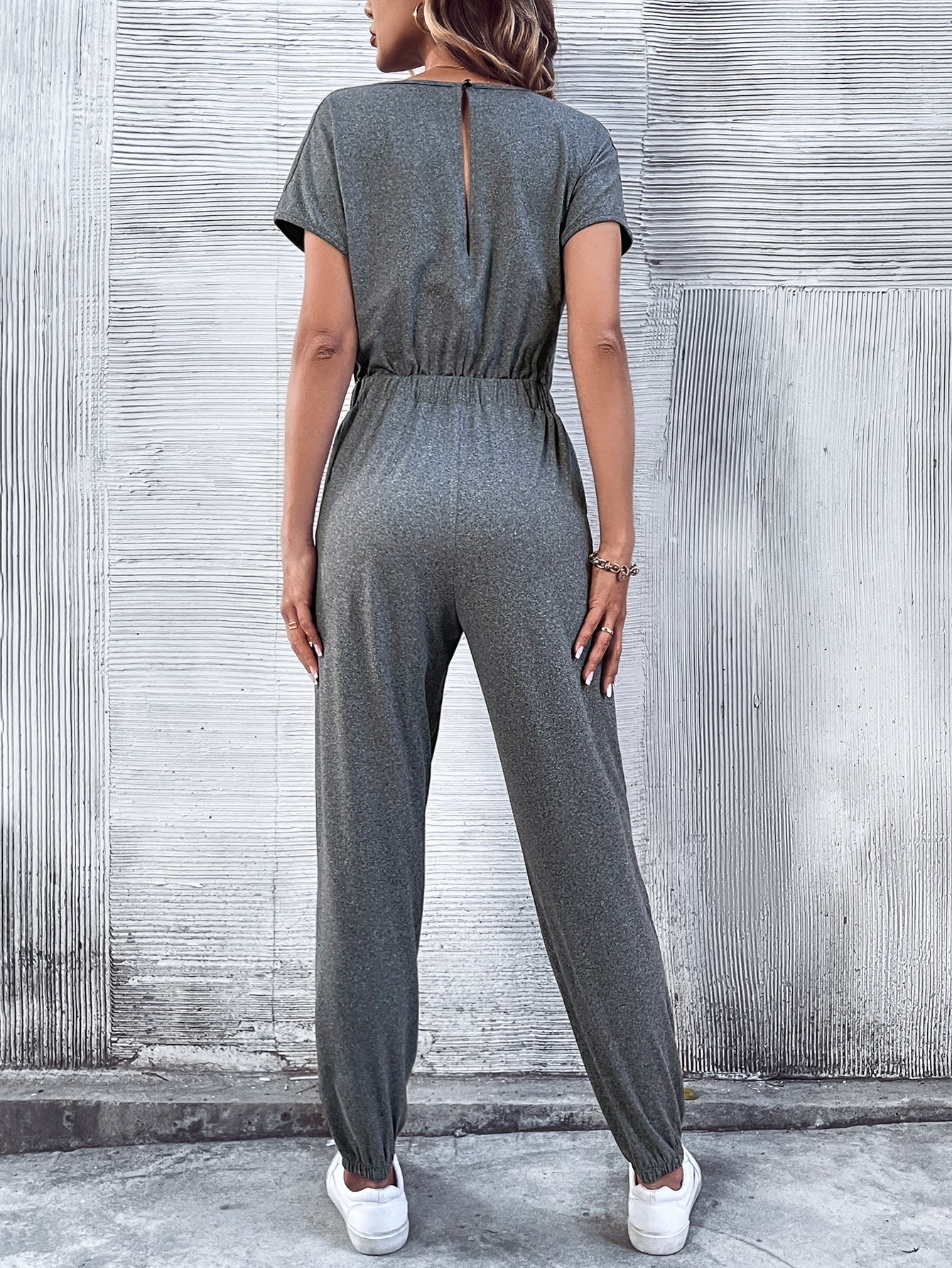 Women Clothing Short Sleeved Casual Wide Leg Jumpsuit