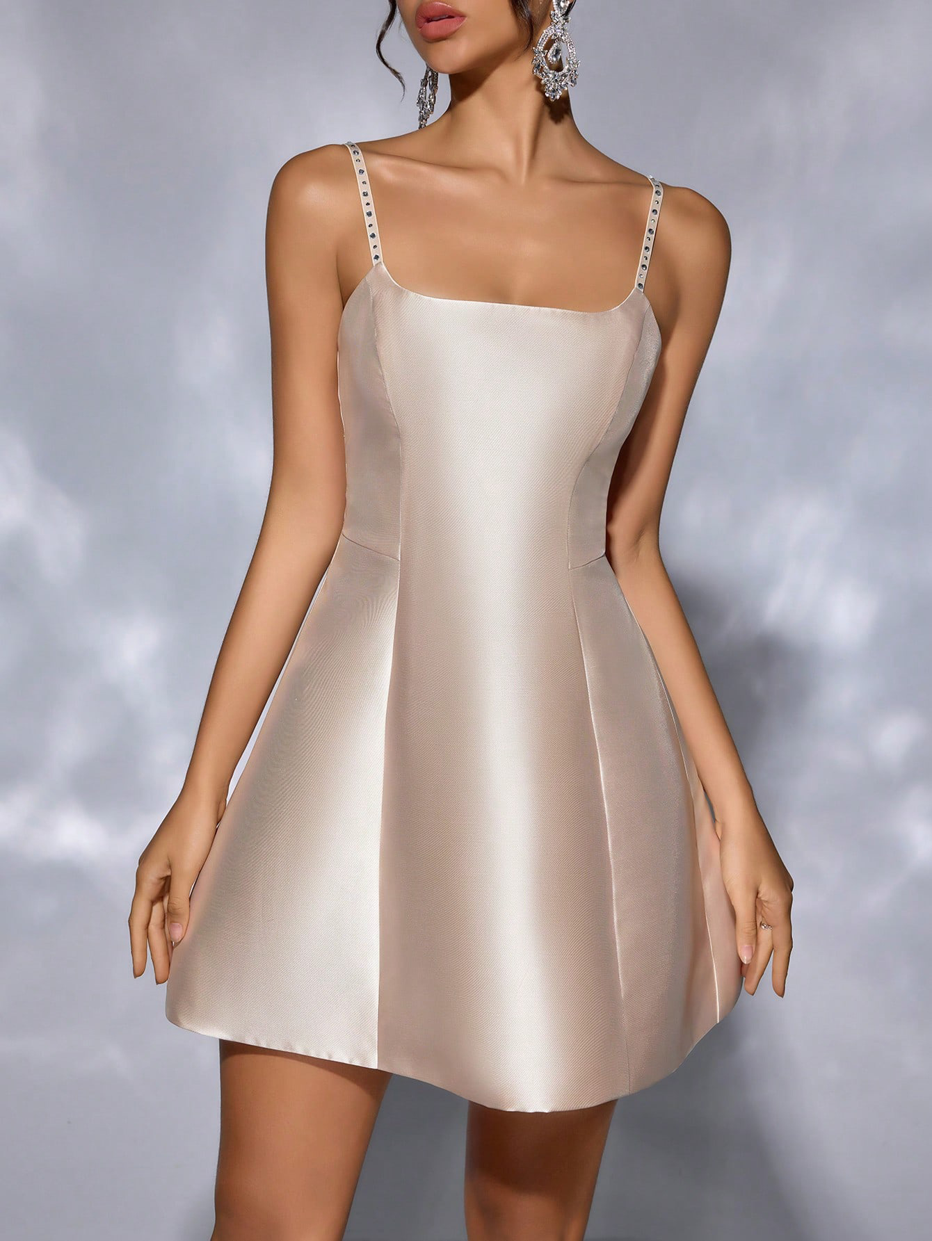 Women Clothing Slim Fit Glossy Solid Color Short Sexy Backless Dress Sleeveless Strap Micro Pull Evening Dress
