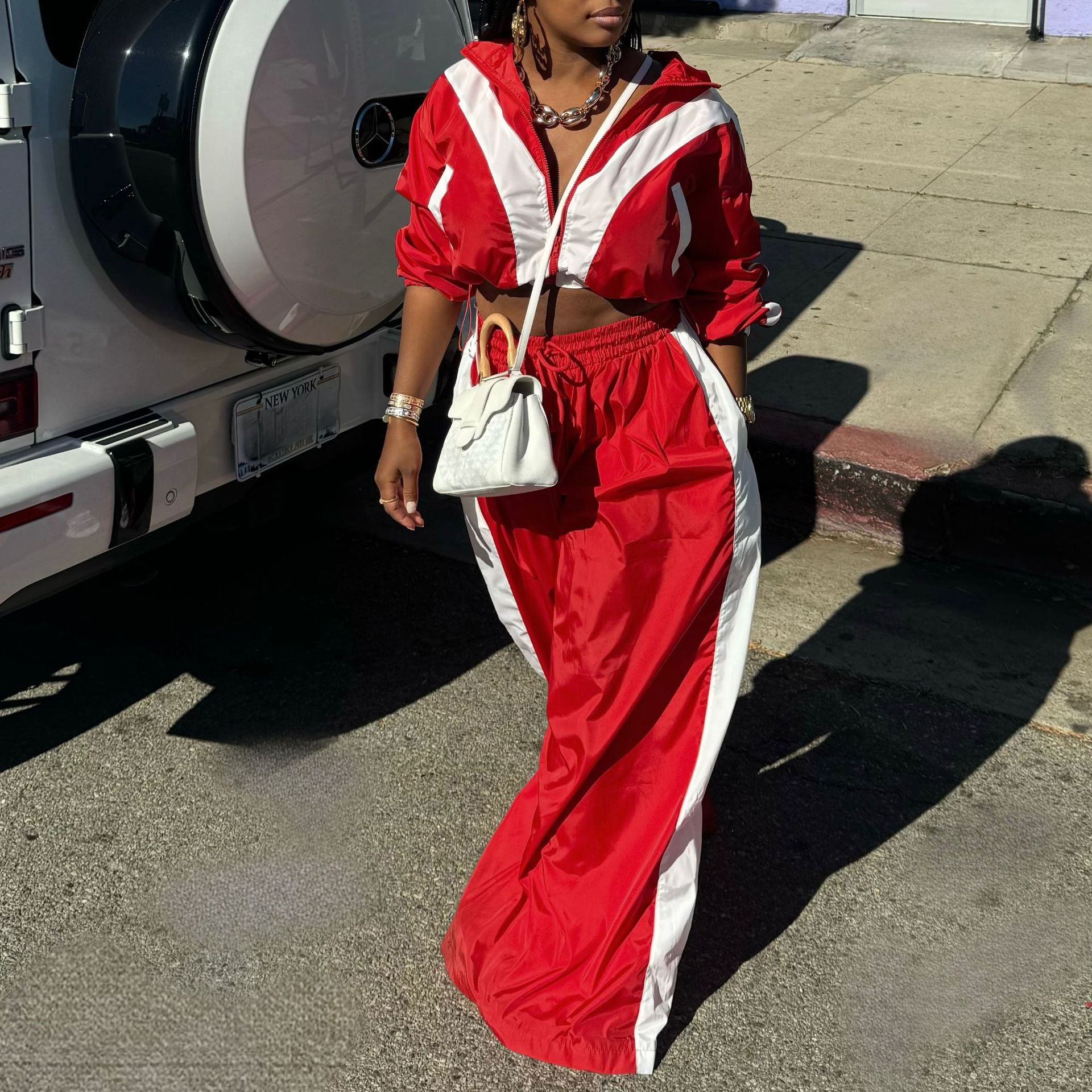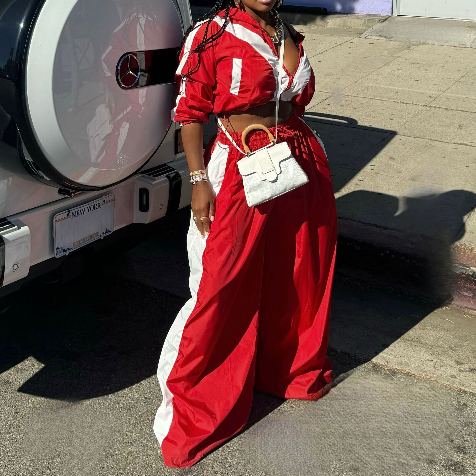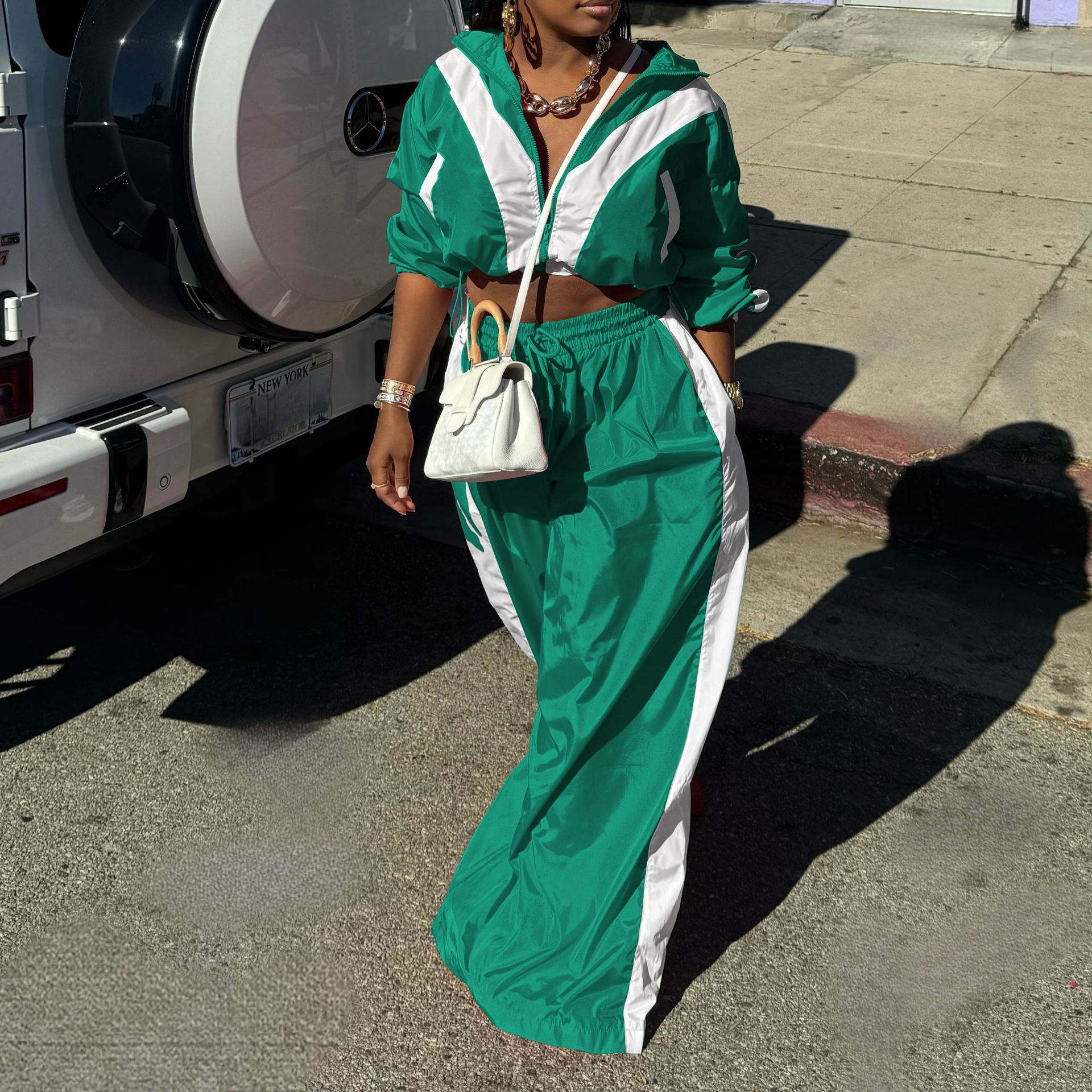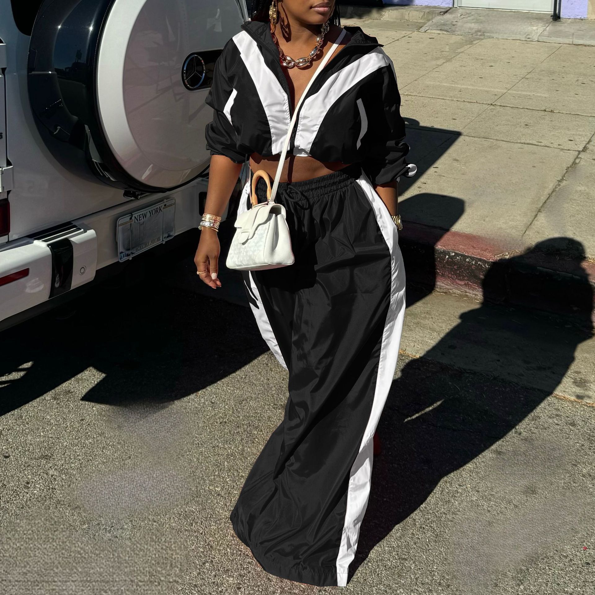 Women Clothing Sportswear Suit Woven Baggy Coat Two Piece Set Stitching Spring Autumn