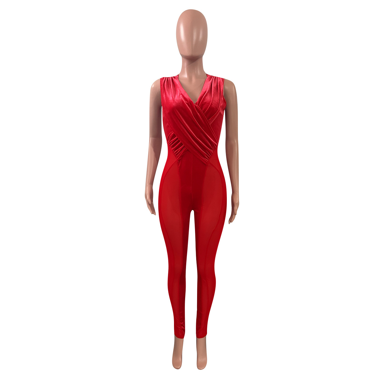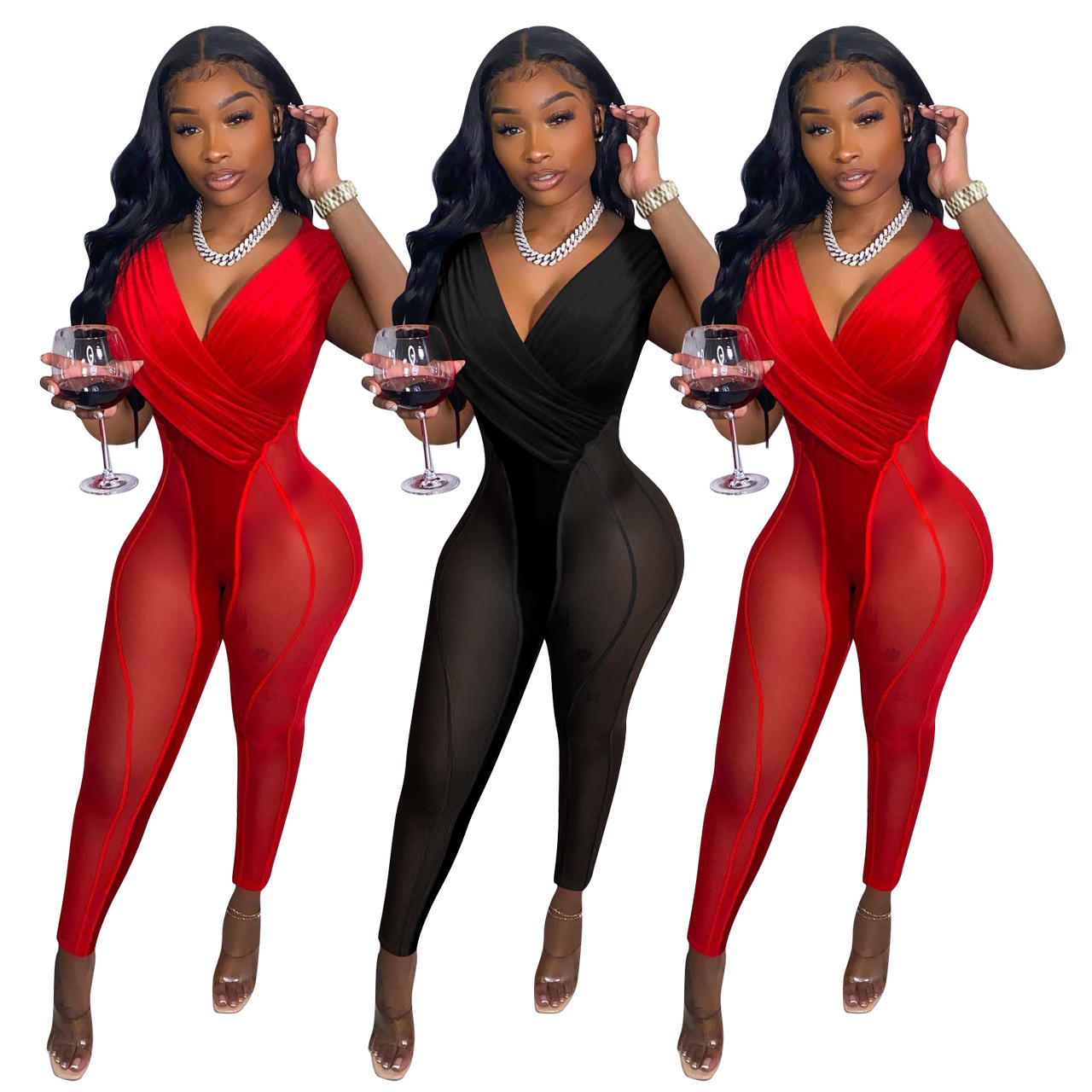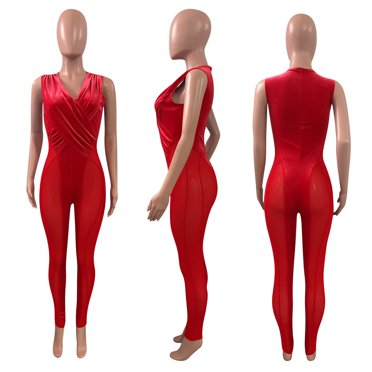 Women Clothing Spring Summer Arrival Supply Mesh Velvet Stitching Jumpsuit