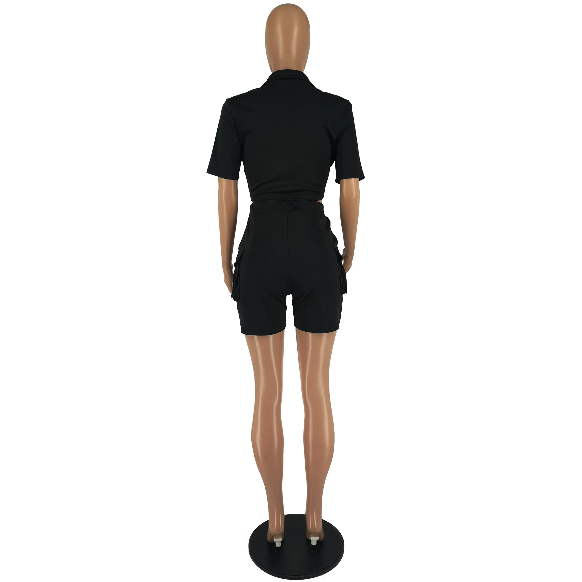 Women Clothing Urban Shirt Short Sleeve Shorts Solid Color Two Piece Set