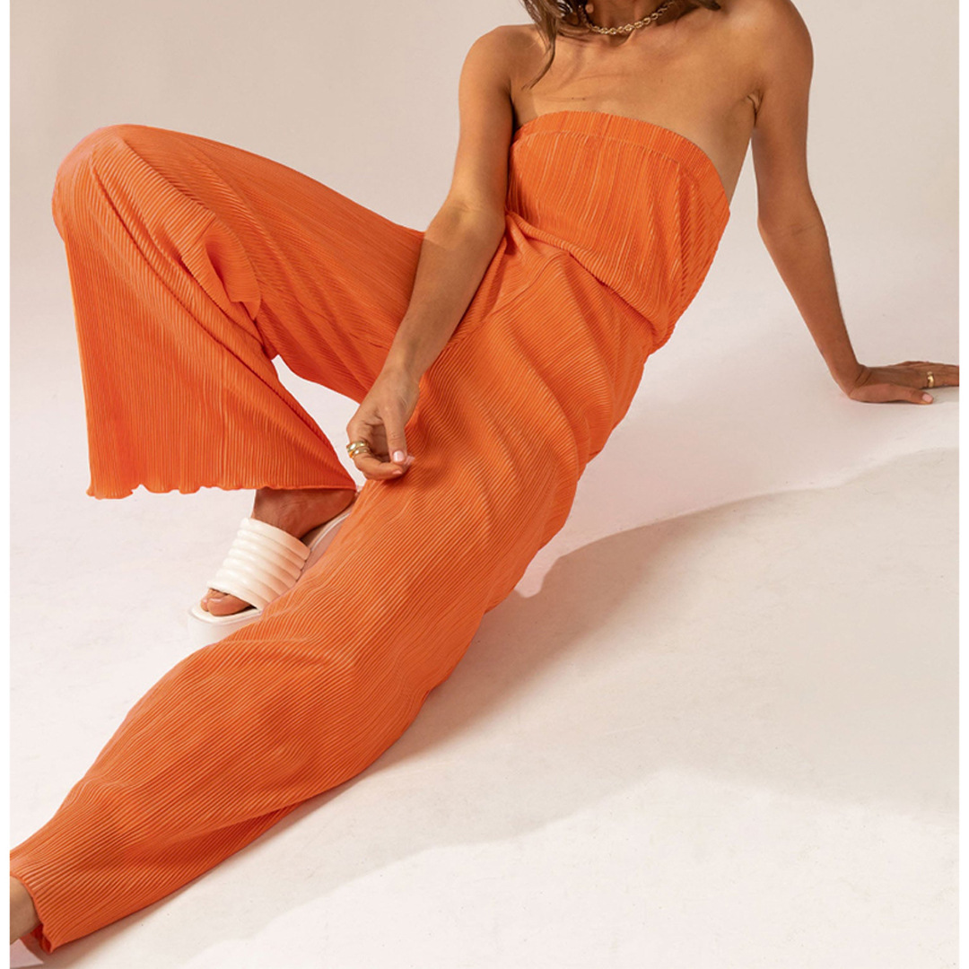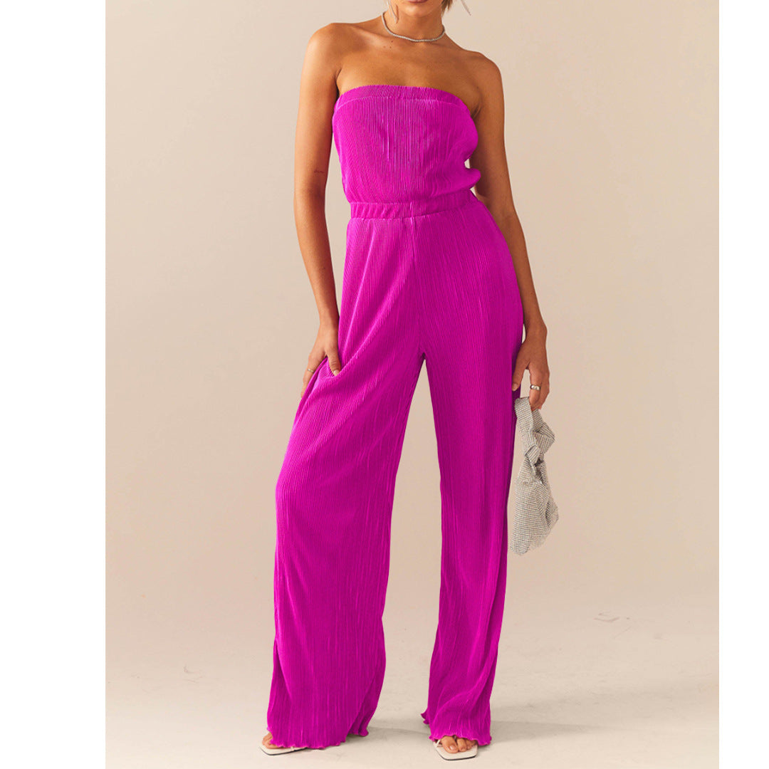 Women Sexy Comfortable Pleated Cloth Chest Wrapped Wide Leg Jumpsuit