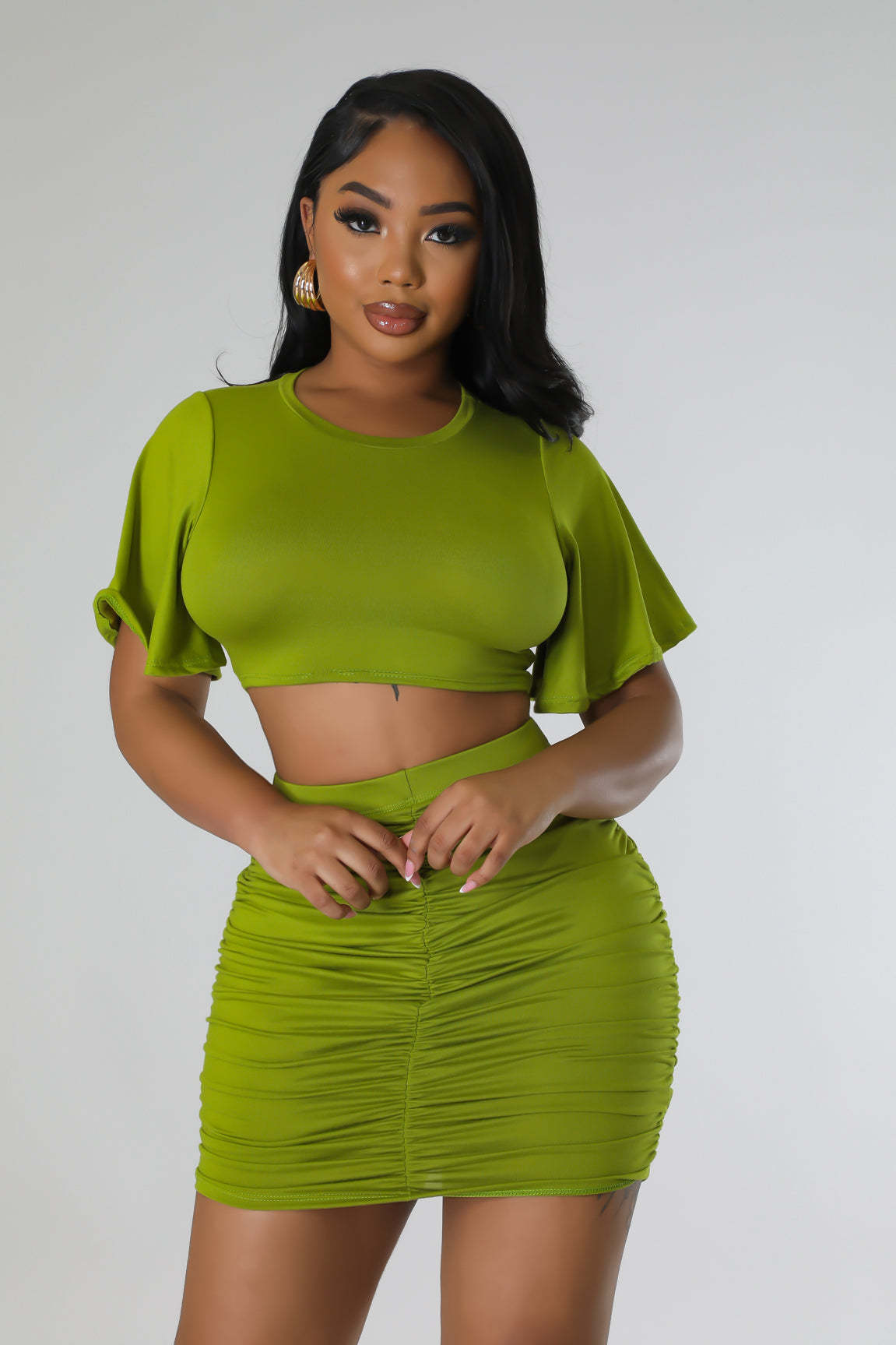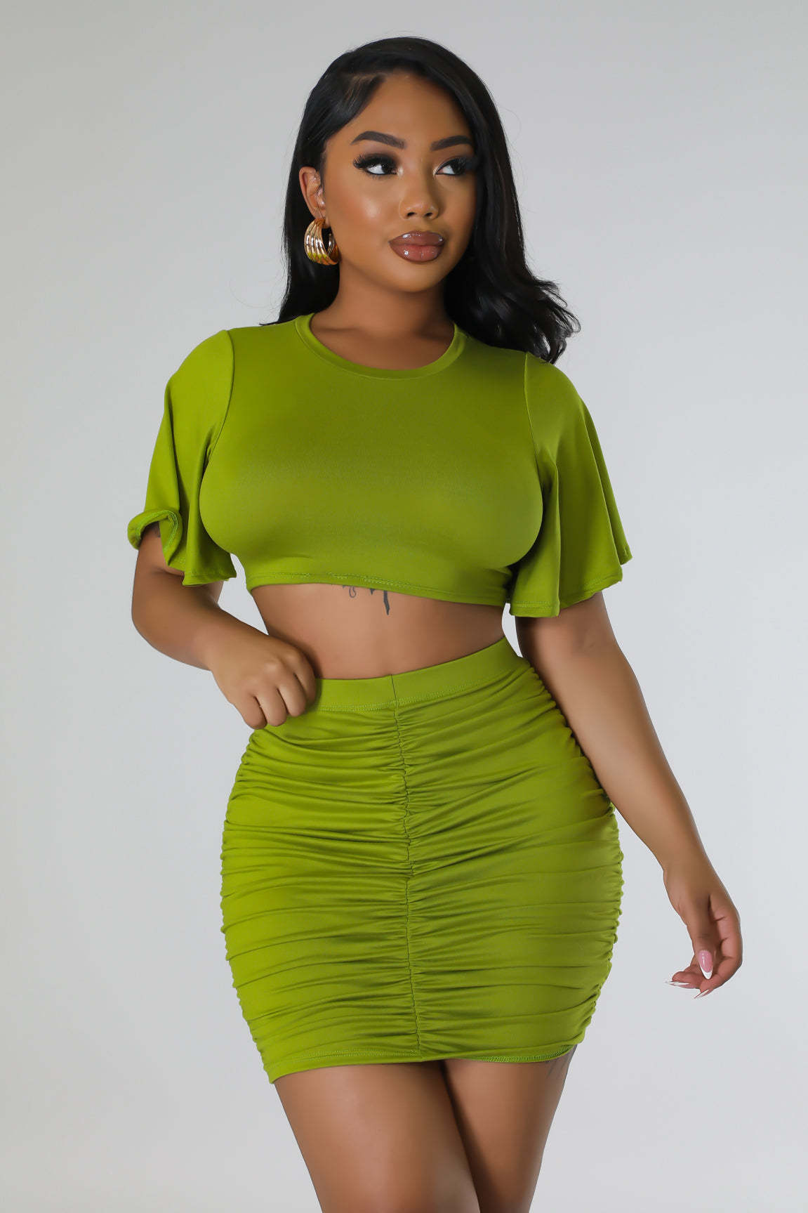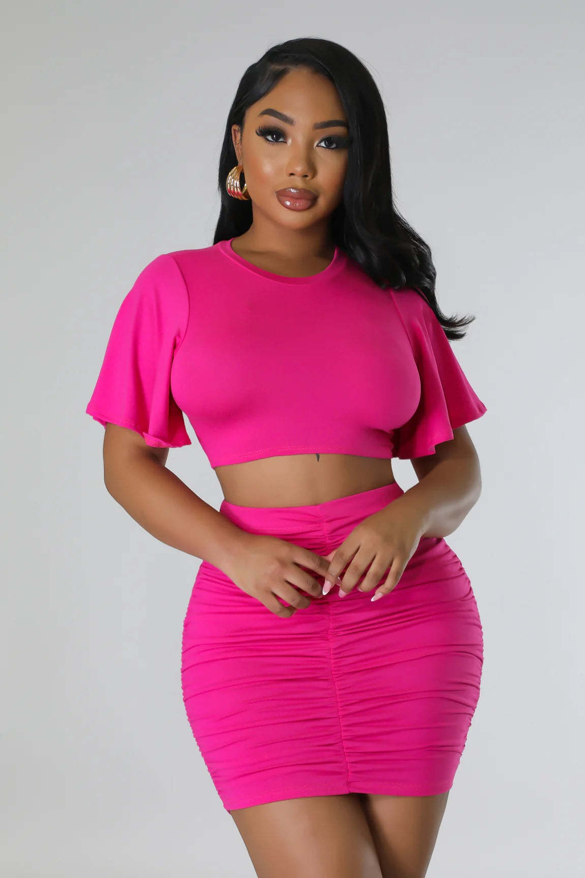 Women Sexy Suit Short Top With Hip Skirt Two Piece Set