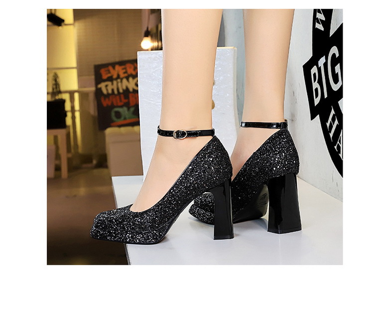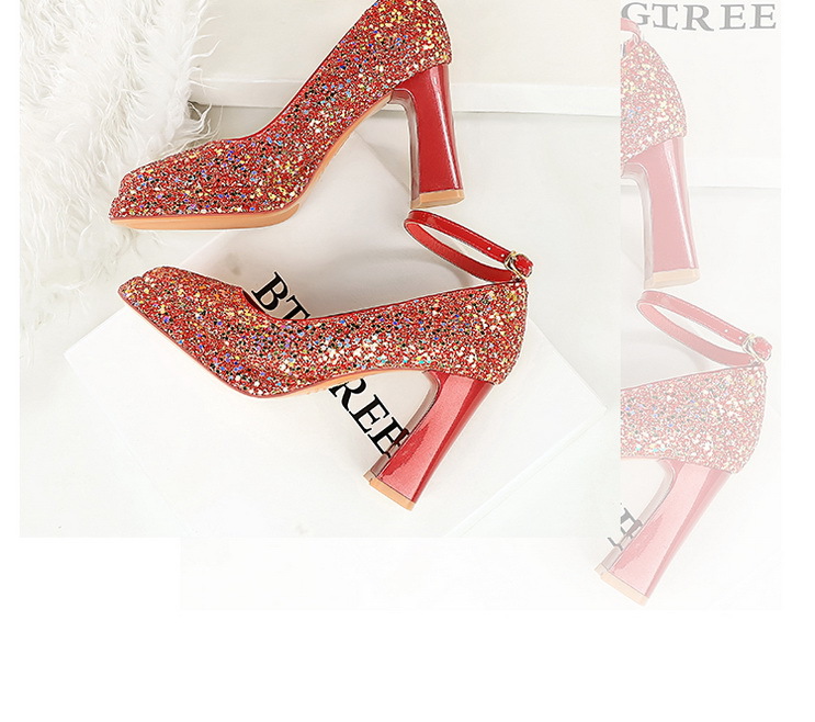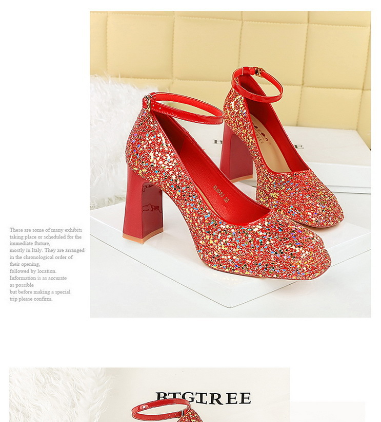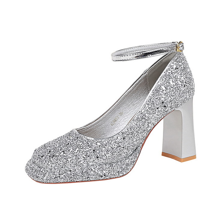 Women Shoes Chunky Heel High Heel Waterproof Platform Low Cut Square Toe Sequ Ankle Strap Shoes Wedding Shoes