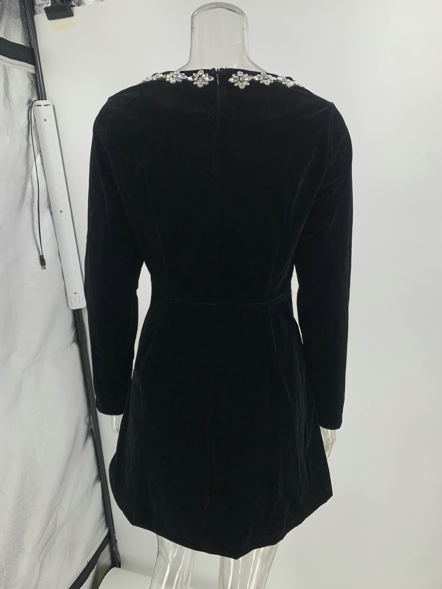 Women Spring Clothing Elegant Square Collar Diamond Inlaid Short Velvet Dress