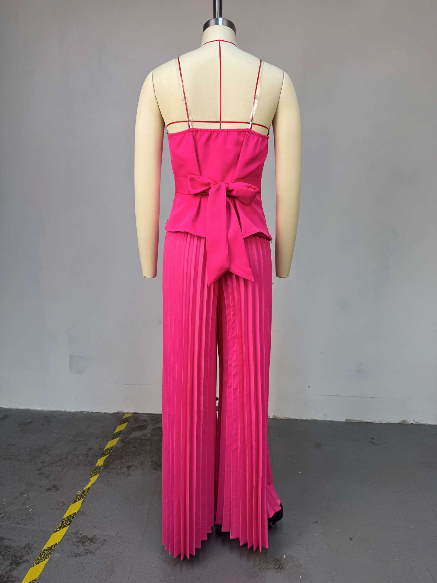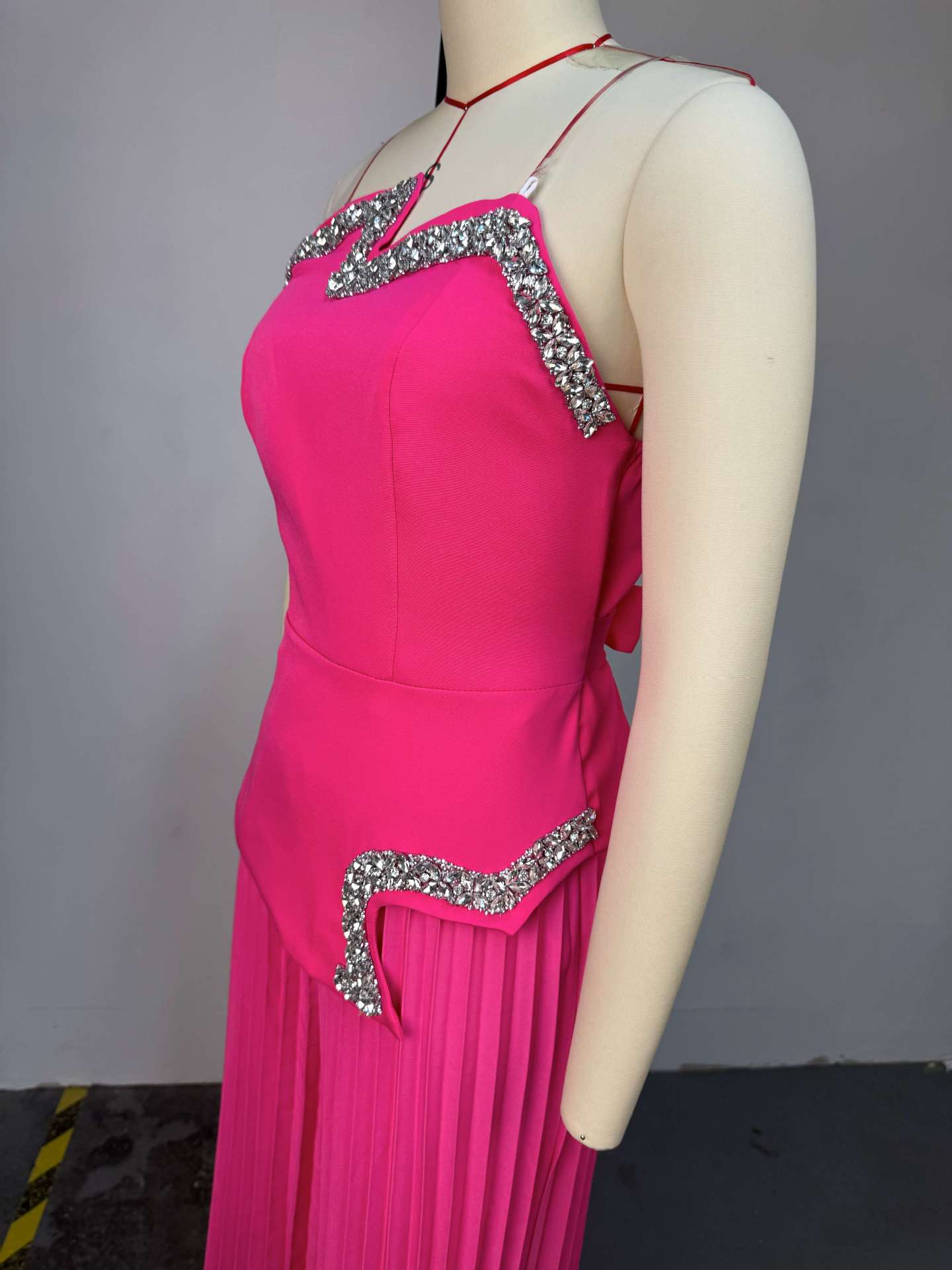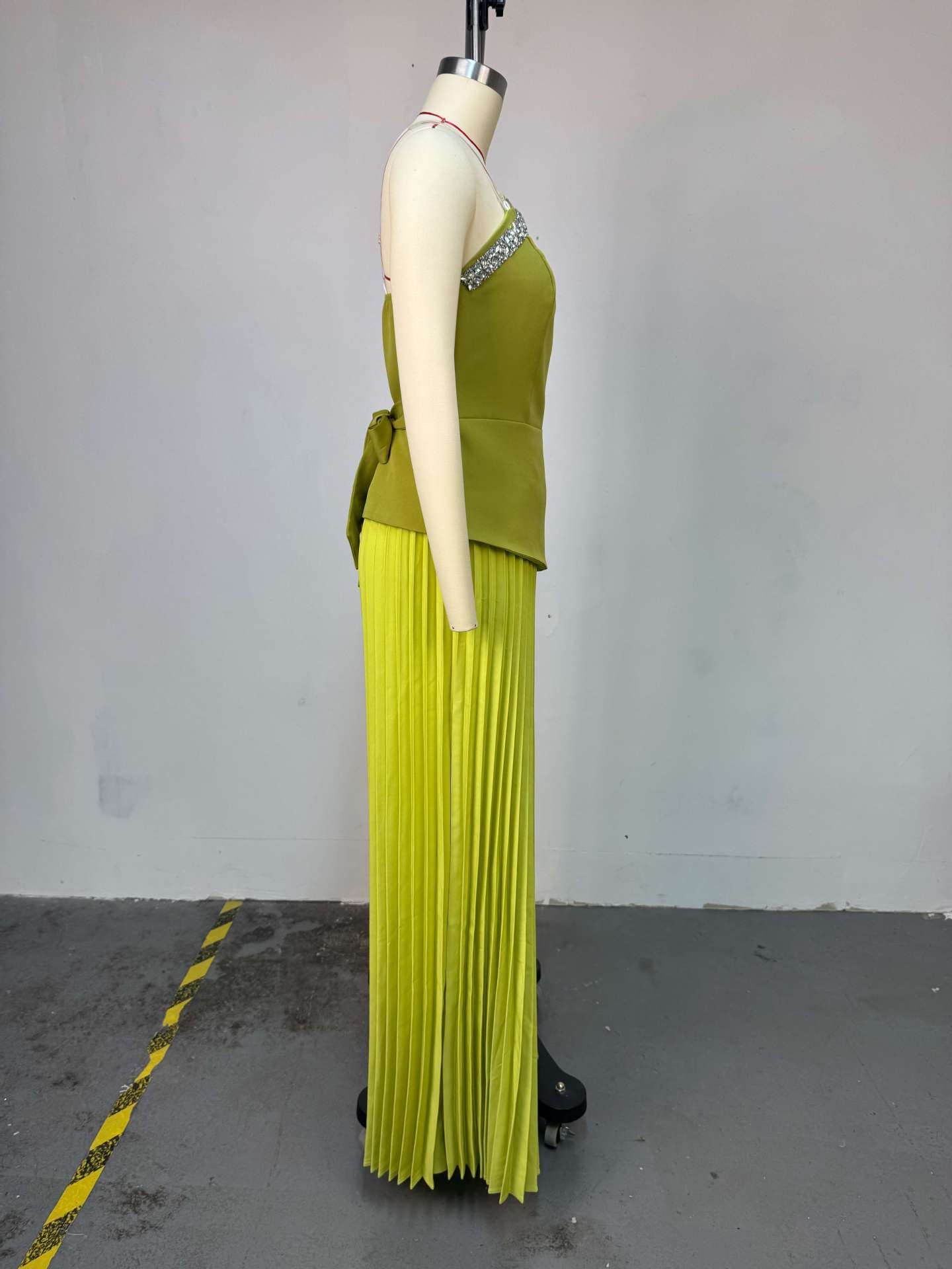 Women Summer Heavy Industry Tube Top with Diamond Irregular Asymmetric Top Pleated Wide Leg Trousers Set