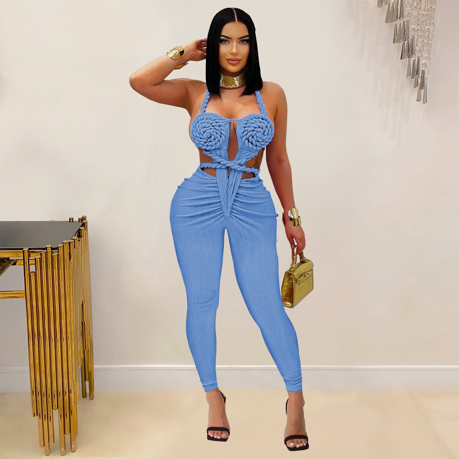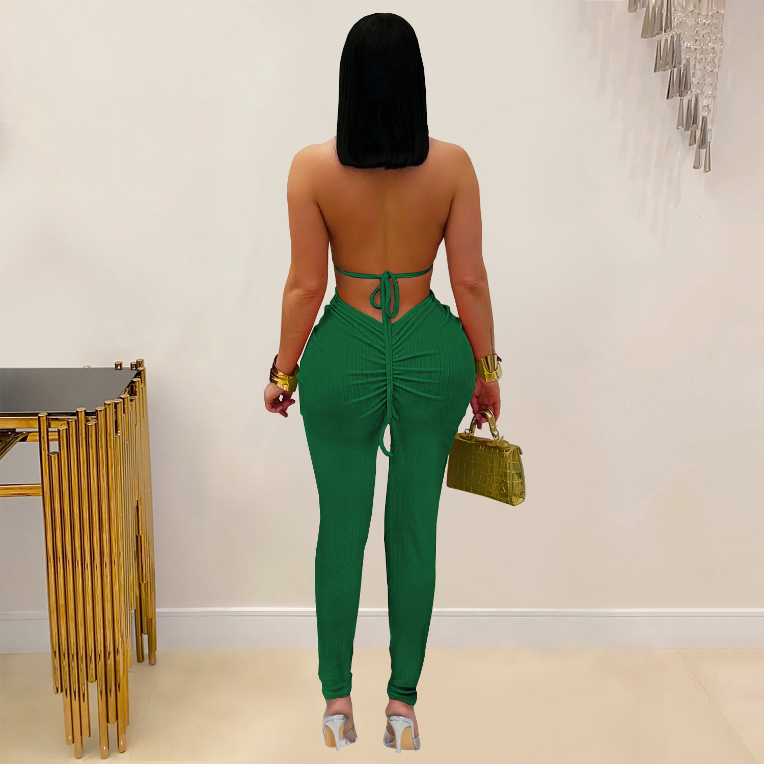 Women Wear Casual Sexy Halter Backless Solid Color Jumpsuit