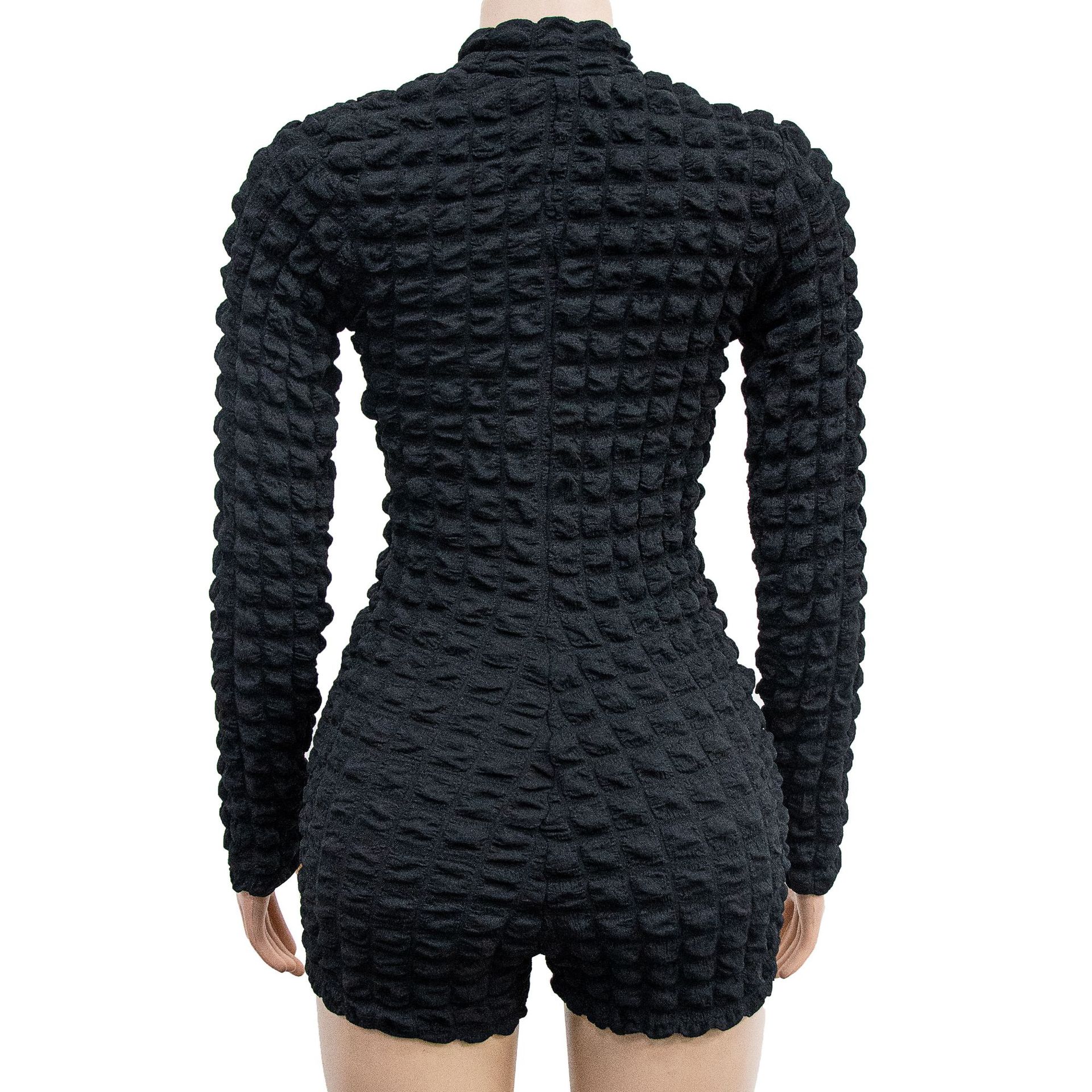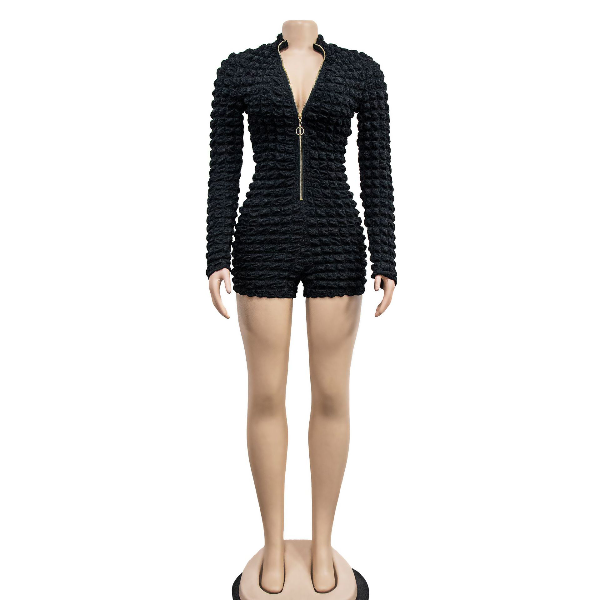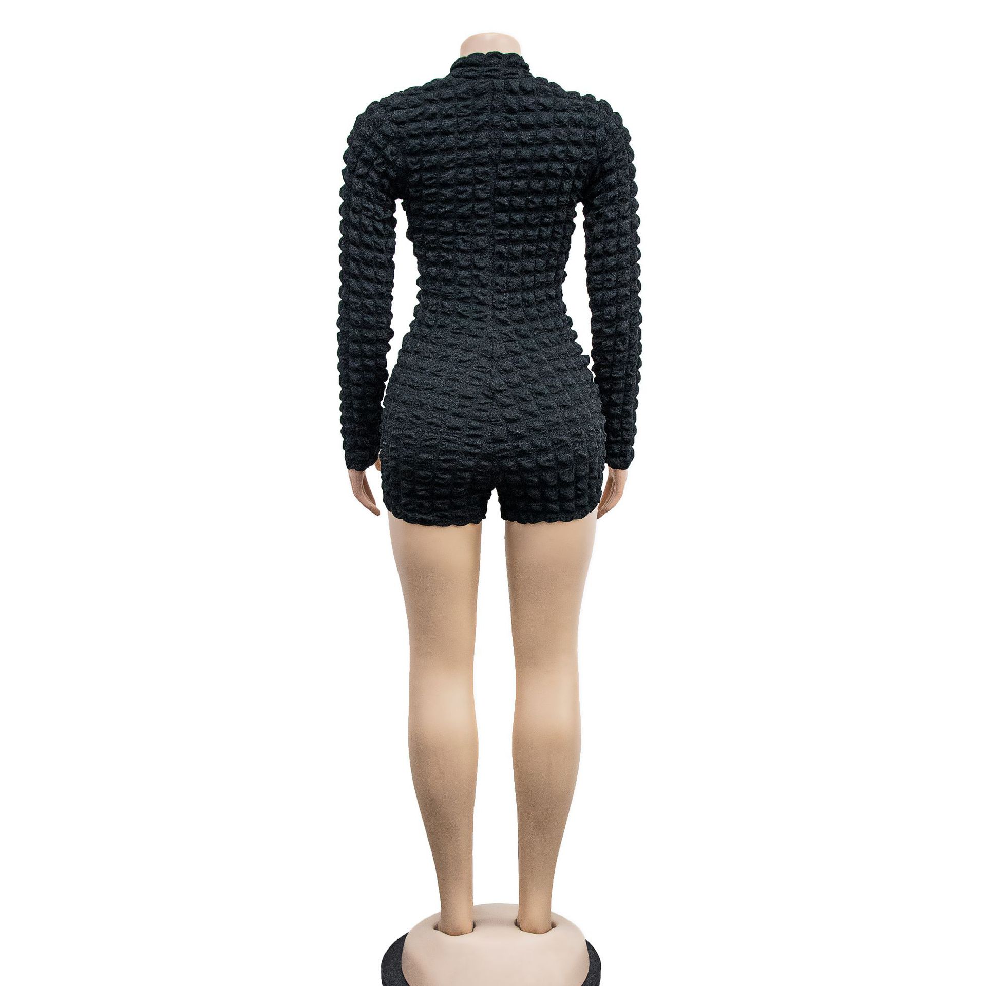Women Wear Solid Color Long Sleeve Faux Coat Shorts Jumpsuit
