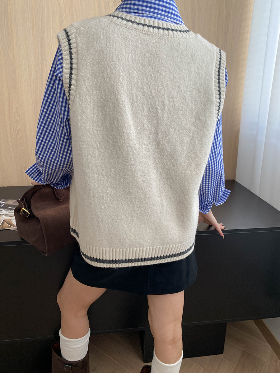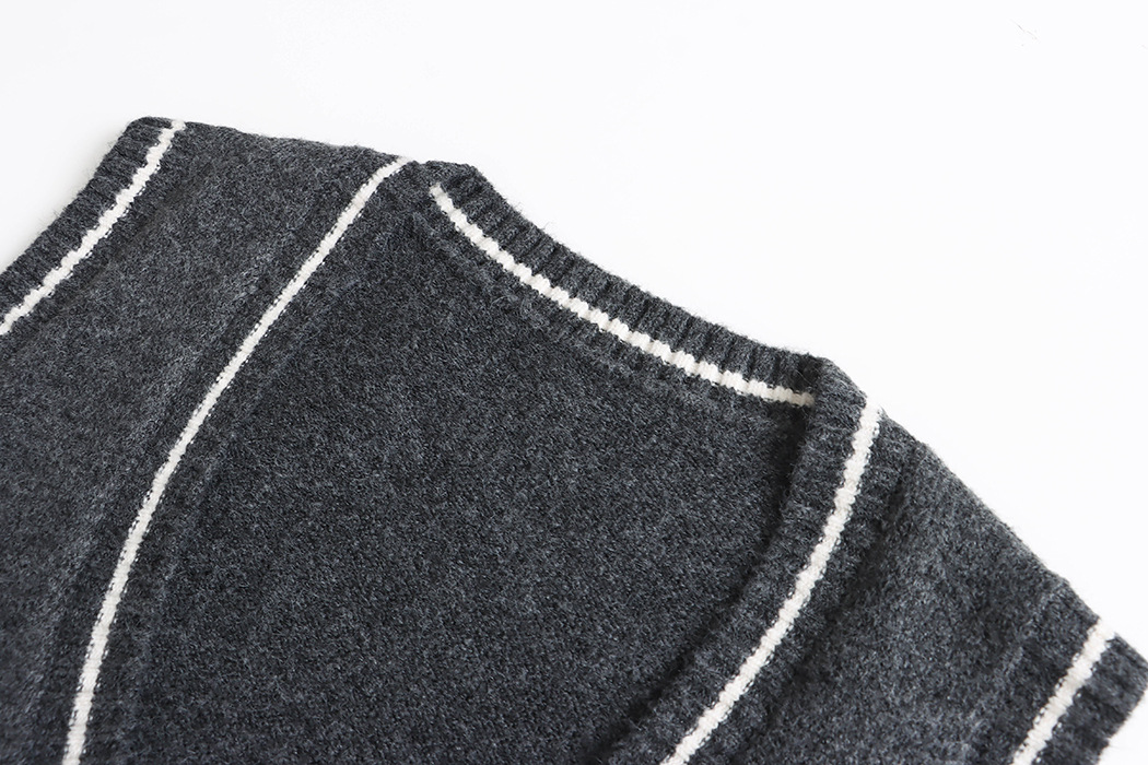 Artistic Retro Color Contrasting Stripe Large V neck Loose Knit Waistcoat Vest