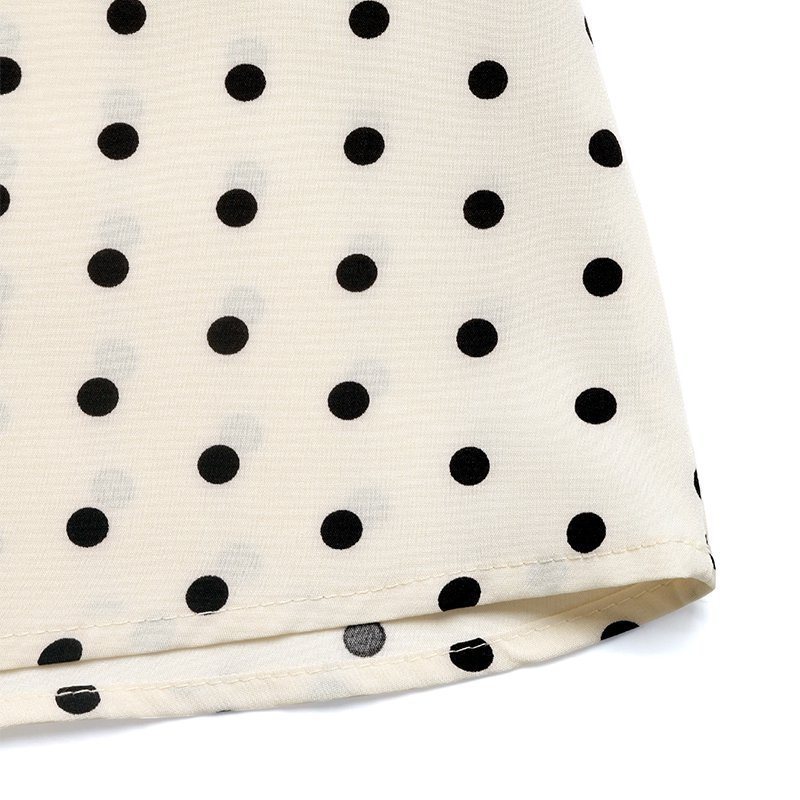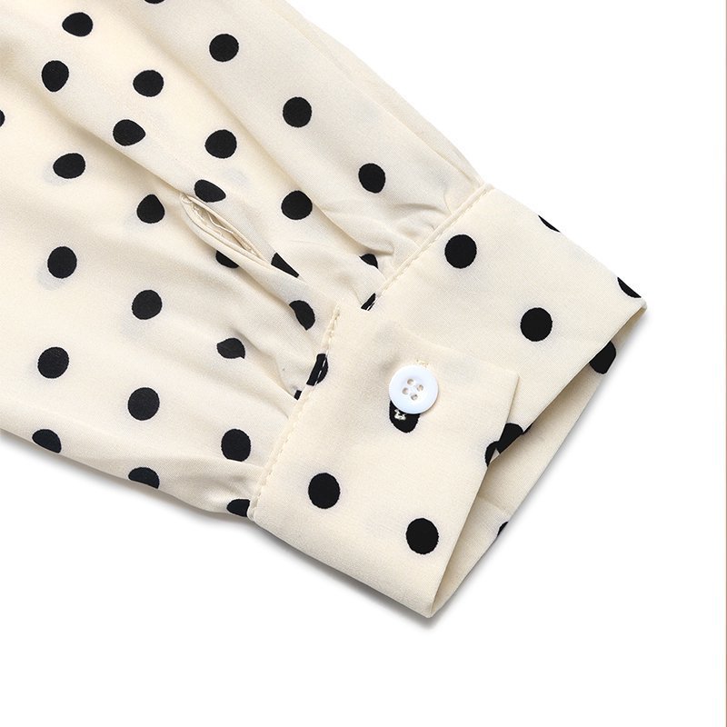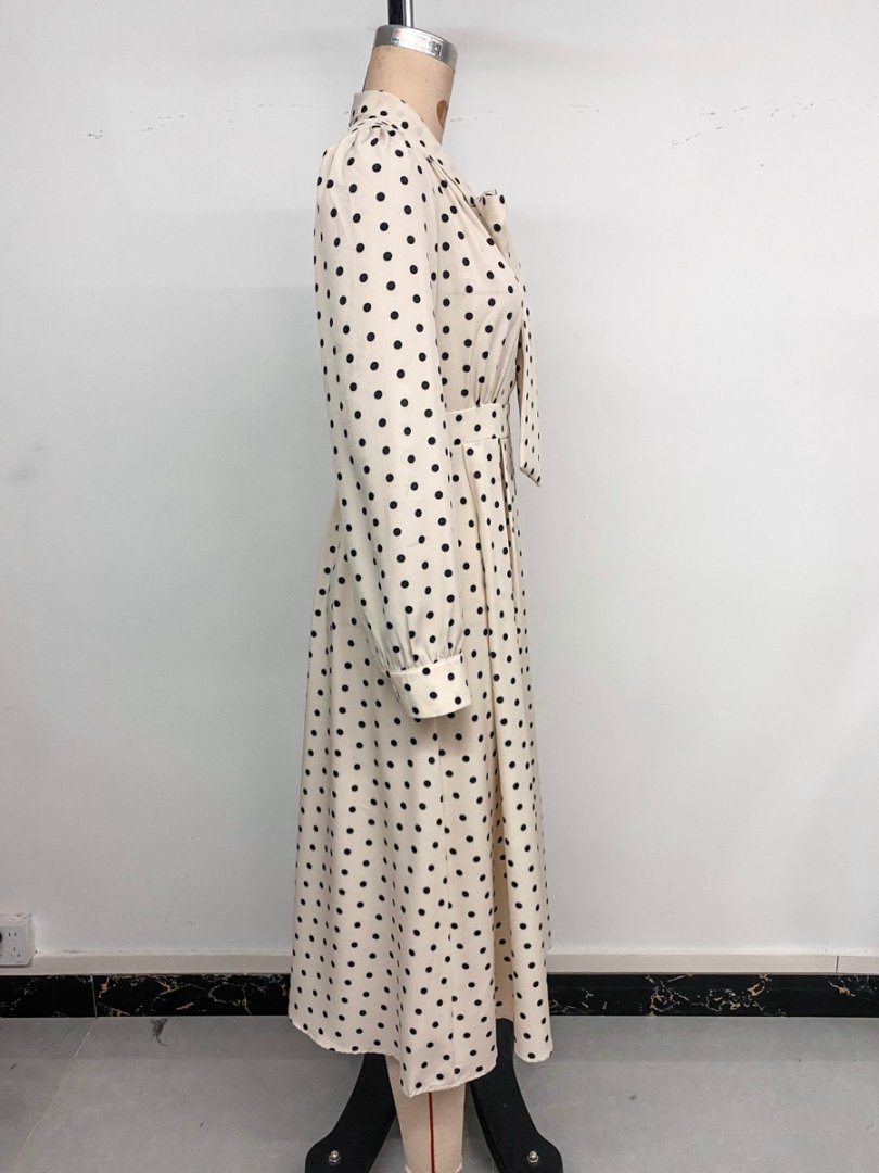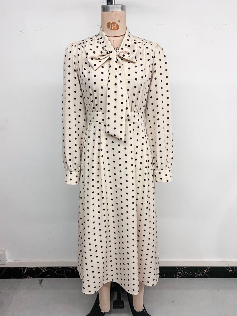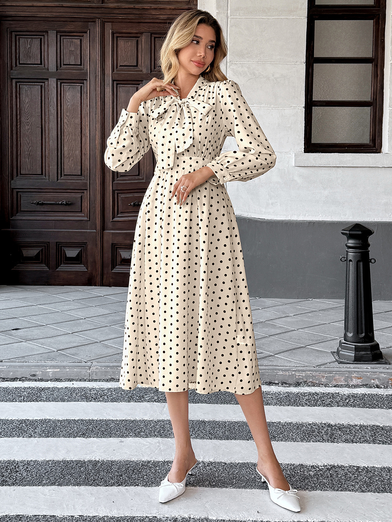 Autumn Elegant Retro Bow Collar Long Sleeve Fitted Waist Polka Dots Dress