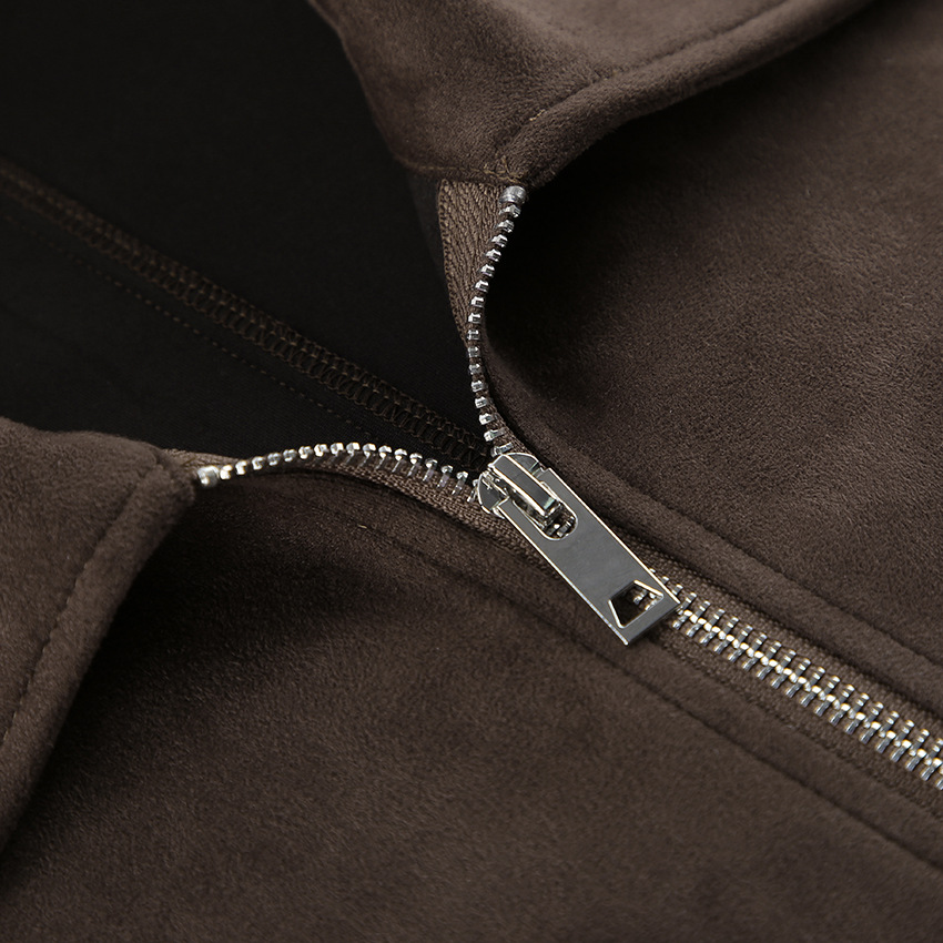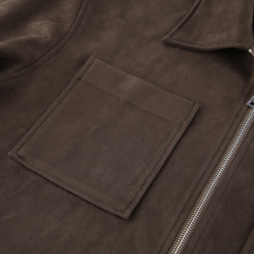 Autumn Winter Long Sleeve Suede Coat Brown Small Business Suit Zip Top Jacket Women Clothing