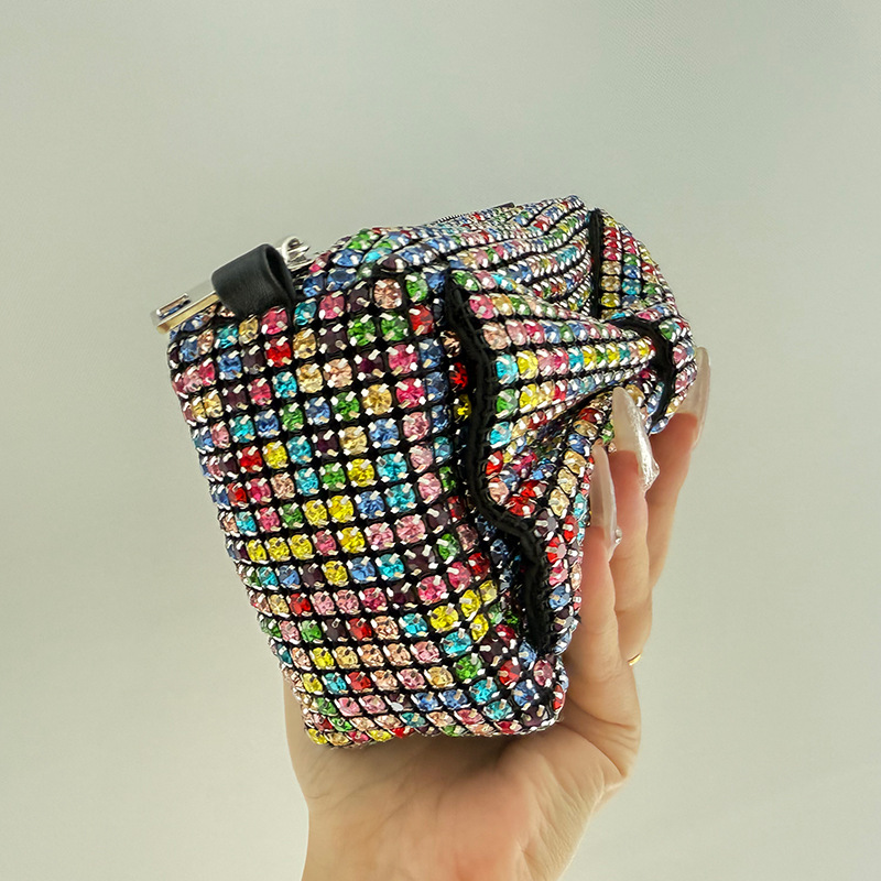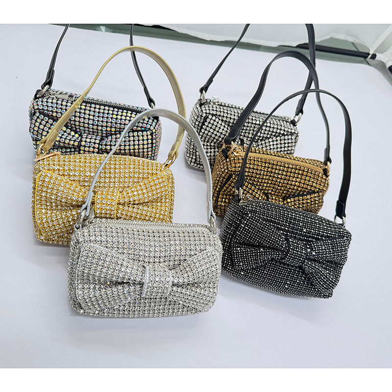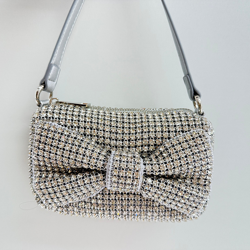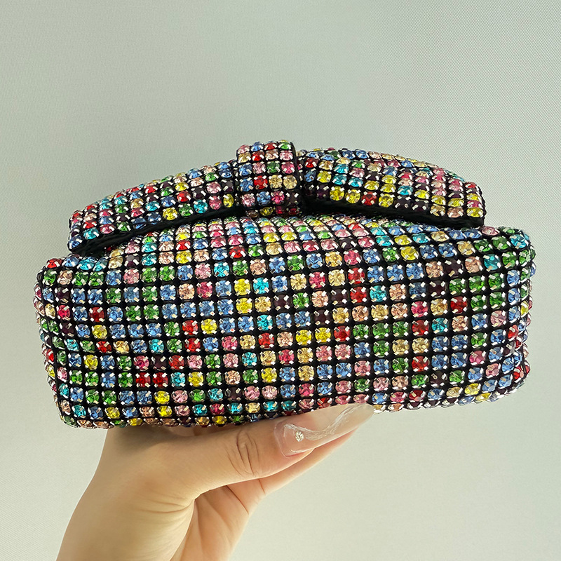 Chic Bow Classic Small Square Bag Full Diamond Party Rhinestone Clutch Chain Shoulder Crossbody Women Trendy Bag