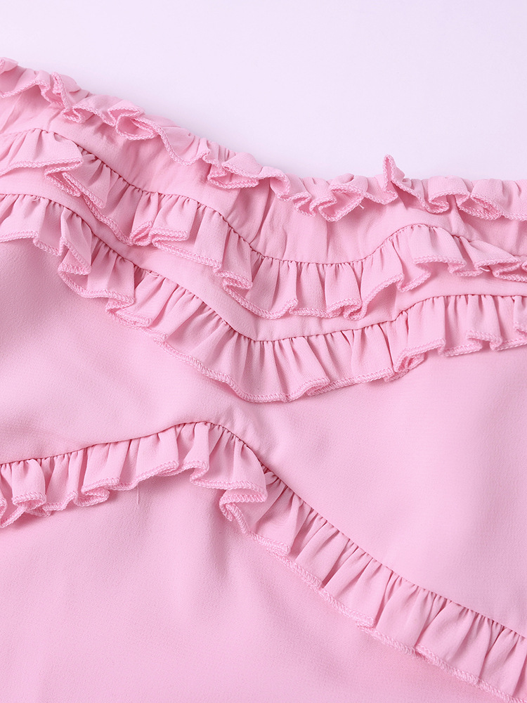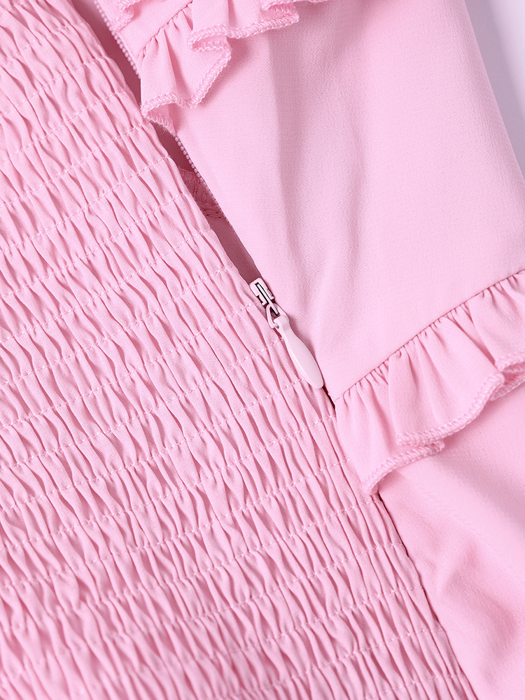 Chiffon Tube Top Dress Sexy Backless Wooden Ear Smocking Stitching Hip Dress
