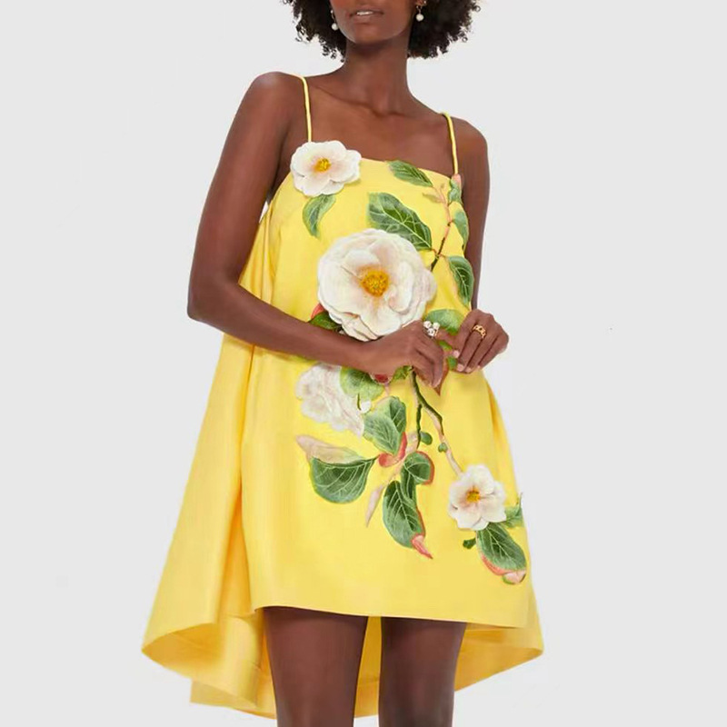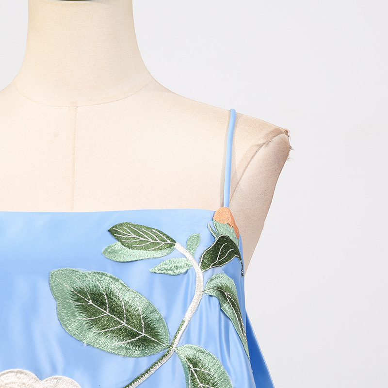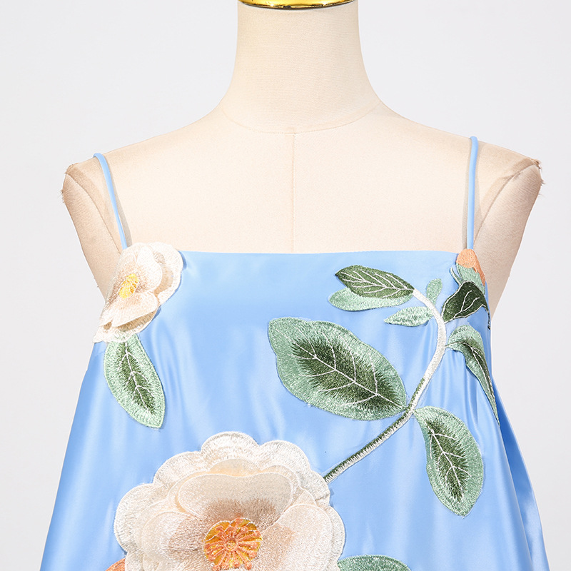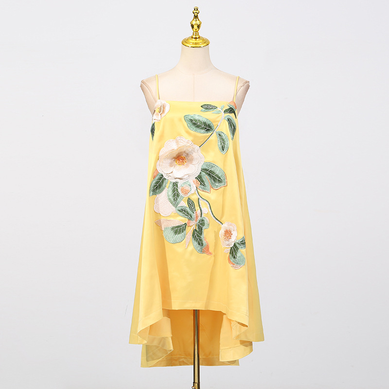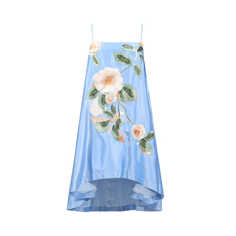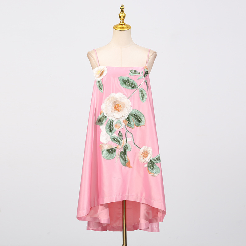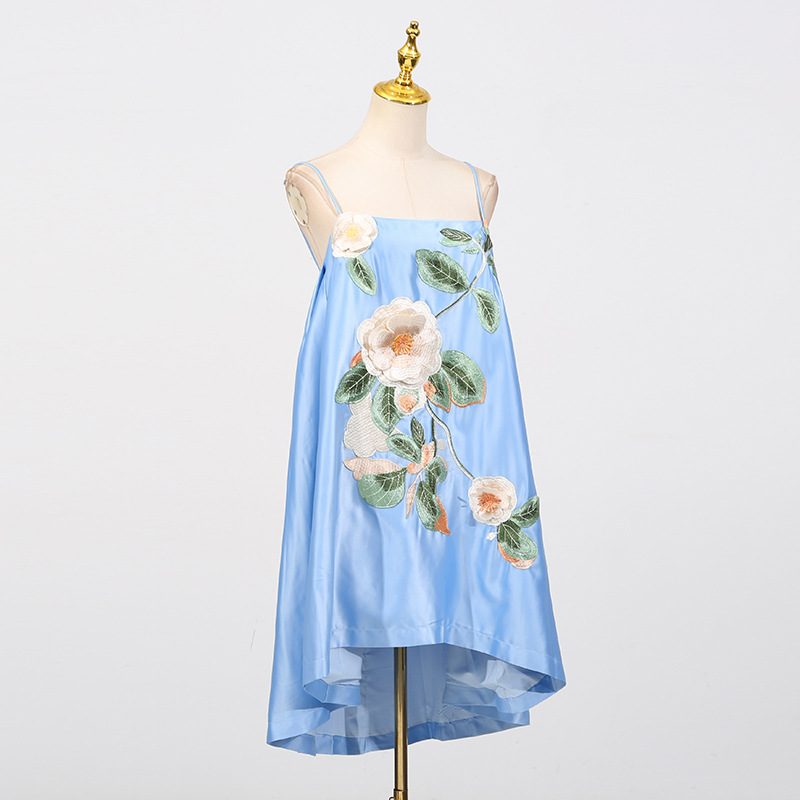 Chinese Retro Peony Embroidered Floral Suspender Slimming Short Women Clothing Loose Slimming Dress