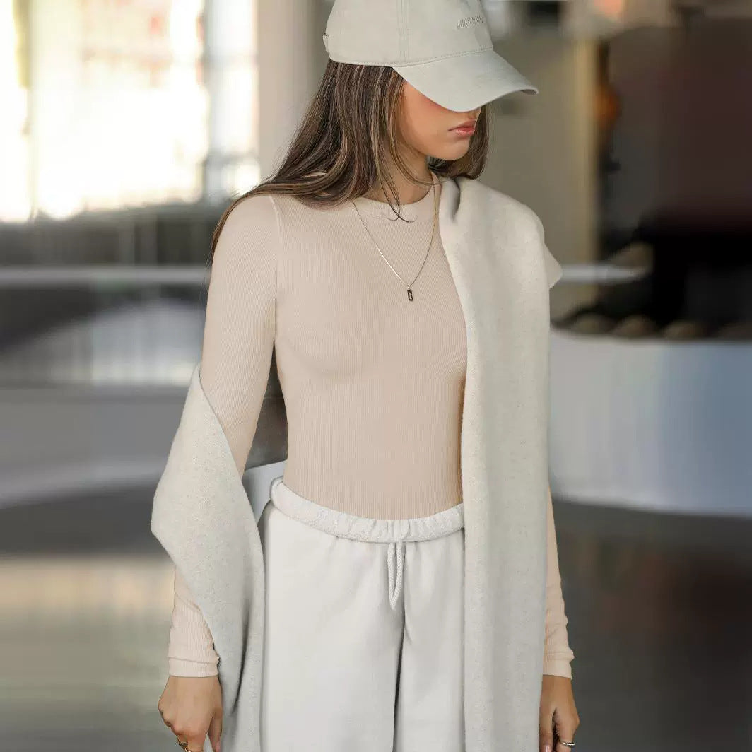Clothes Thread Double Layer Round Neck Long Sleeved T shirt Women Outer Wear Slim Fit Shoulder Sexy Top Sexy