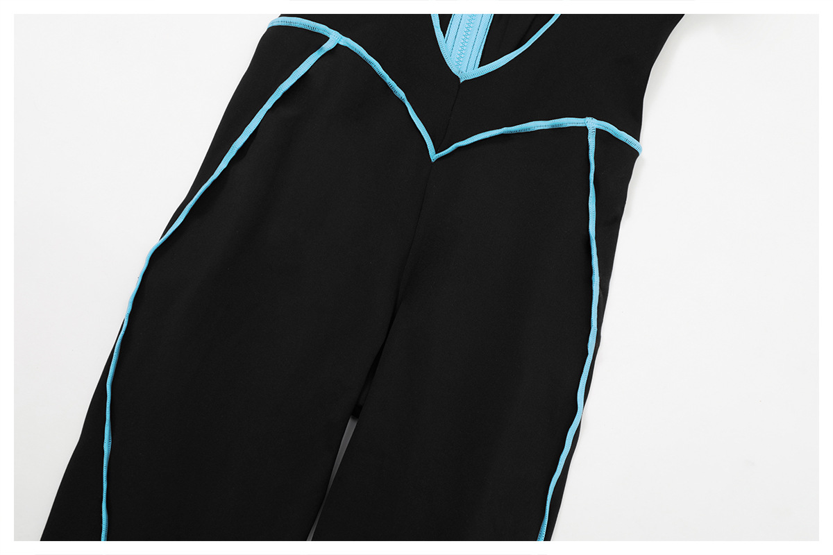 Contrast Color Yoga Workout Clothes Hollow Out Cutout out Beauty Back Tight Jumpsuit Running Exercise Yoga Clothes Women