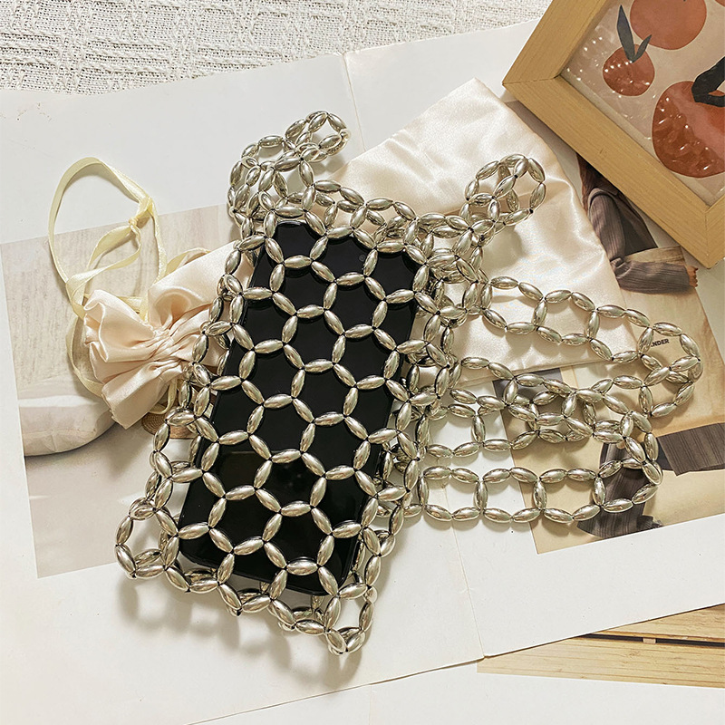Crossbody Bag Handmade Beaded Weave Niche Metal Beaded Bag Holiday All Matching