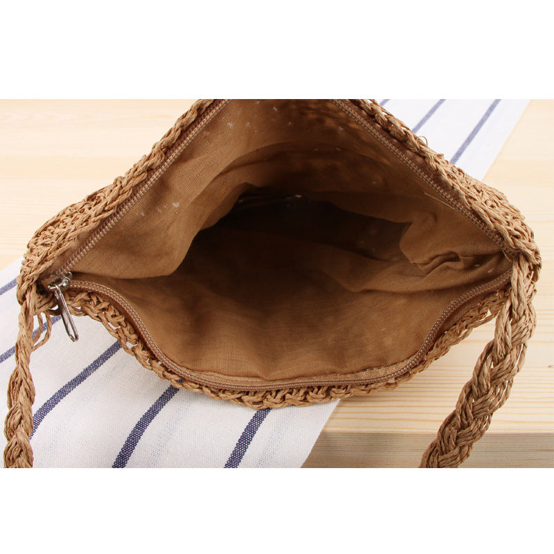 Crossbody Hand-Woven Bag Casual Simple Straw Bag Seaside Vacation Beach Bag