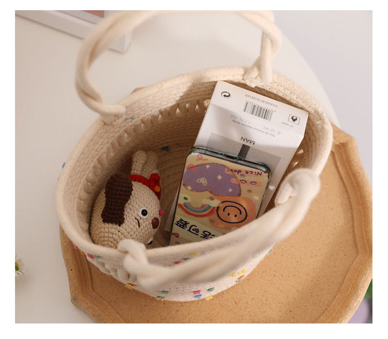 Cute Colorful Beanie Small Basket Niche Hollow Out Cutout Bucket Woven Bag Women Handheld Straw Bag