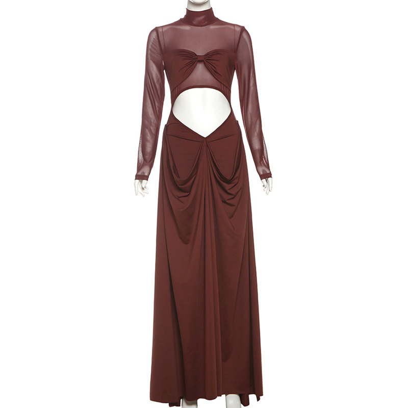 Fall Women Clothing High Collar Slim Fit Sexy Cutout Split Maxi Dress