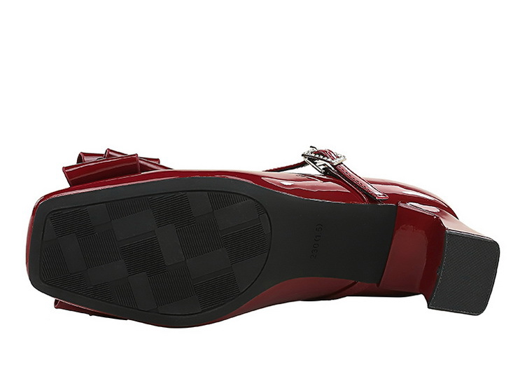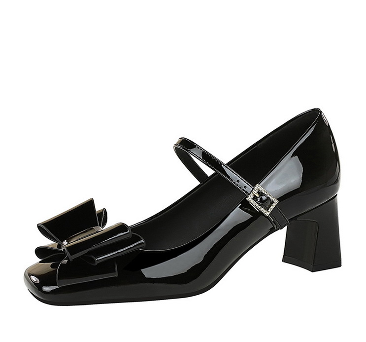 French Cocktail Bow Patent Leather Chunky Heel Mary Jane Women Shoes Square Head with Shallow Mouth Pumps Women