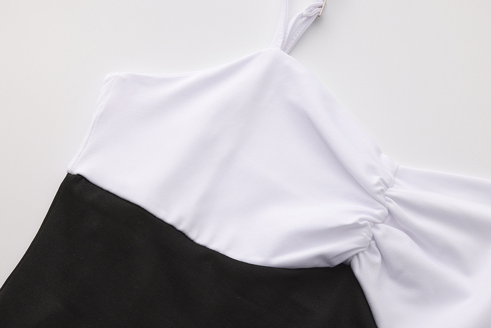 French Contrast Color off Shoulder Tube Top Cinched Waist Slim Sexy Bag Hip Length Dress