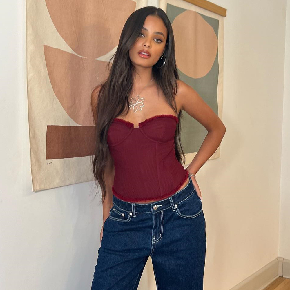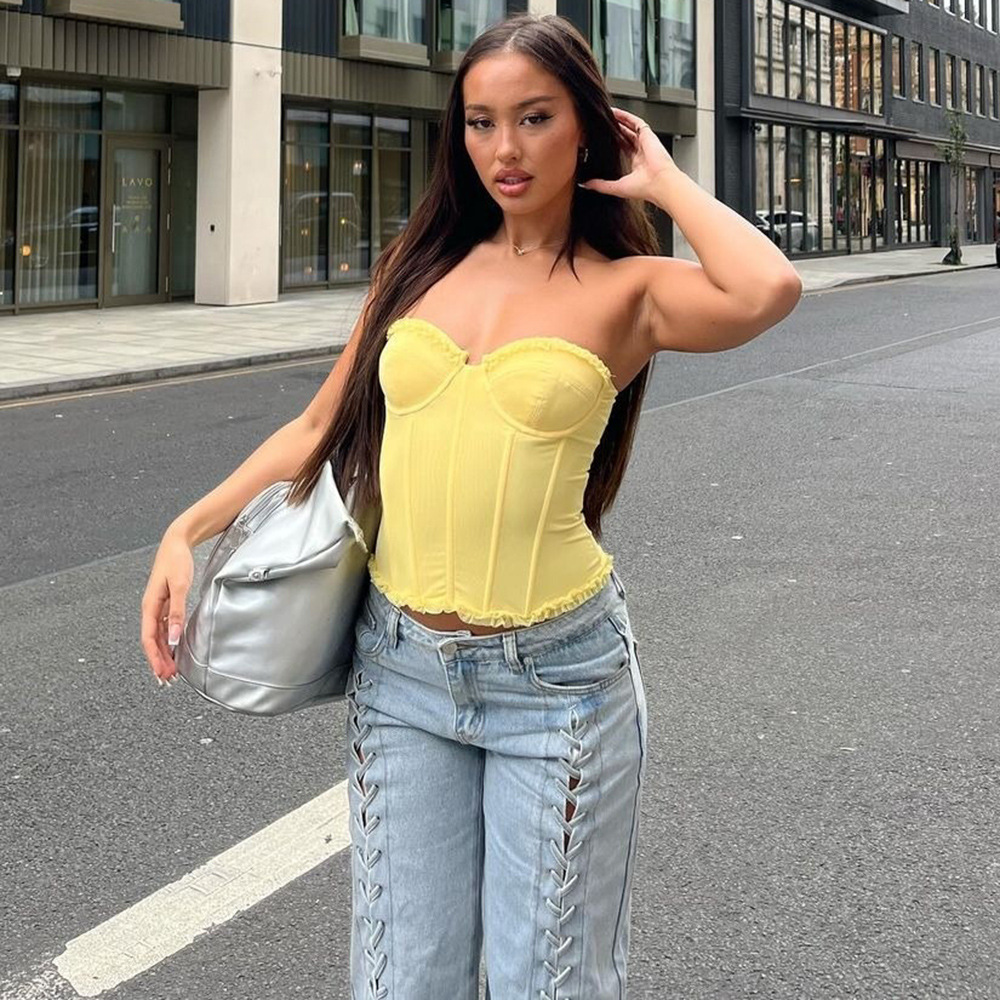 Lace Sexy Sweet Girl Plastic Bones Body Shaping Sexy Tube Top Backless See through Chest Top