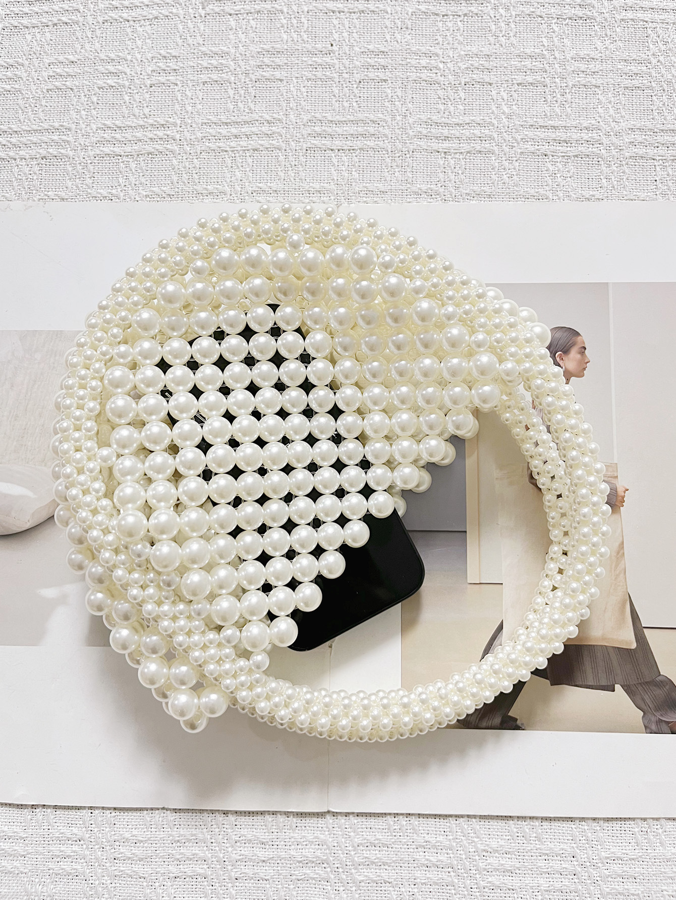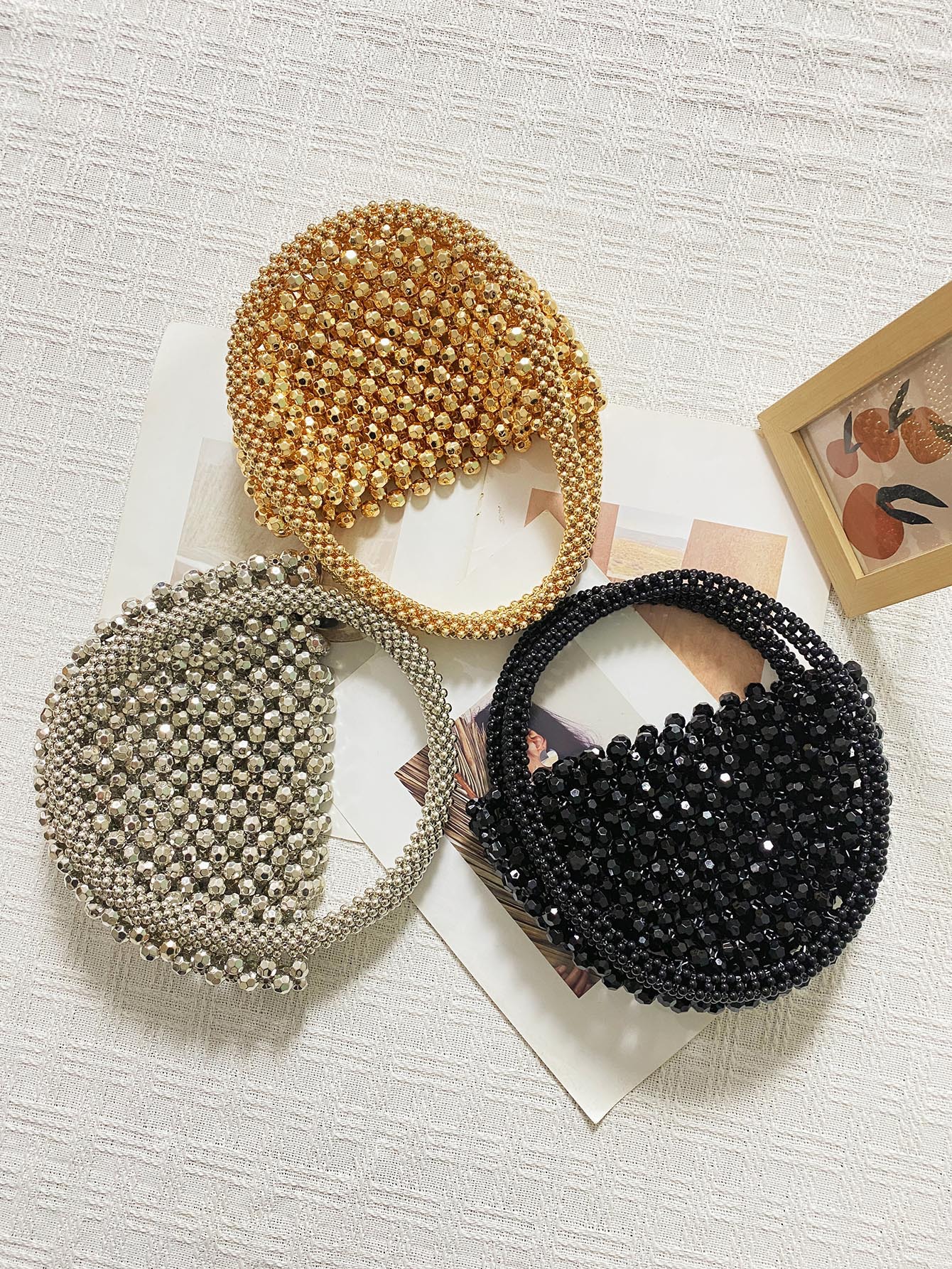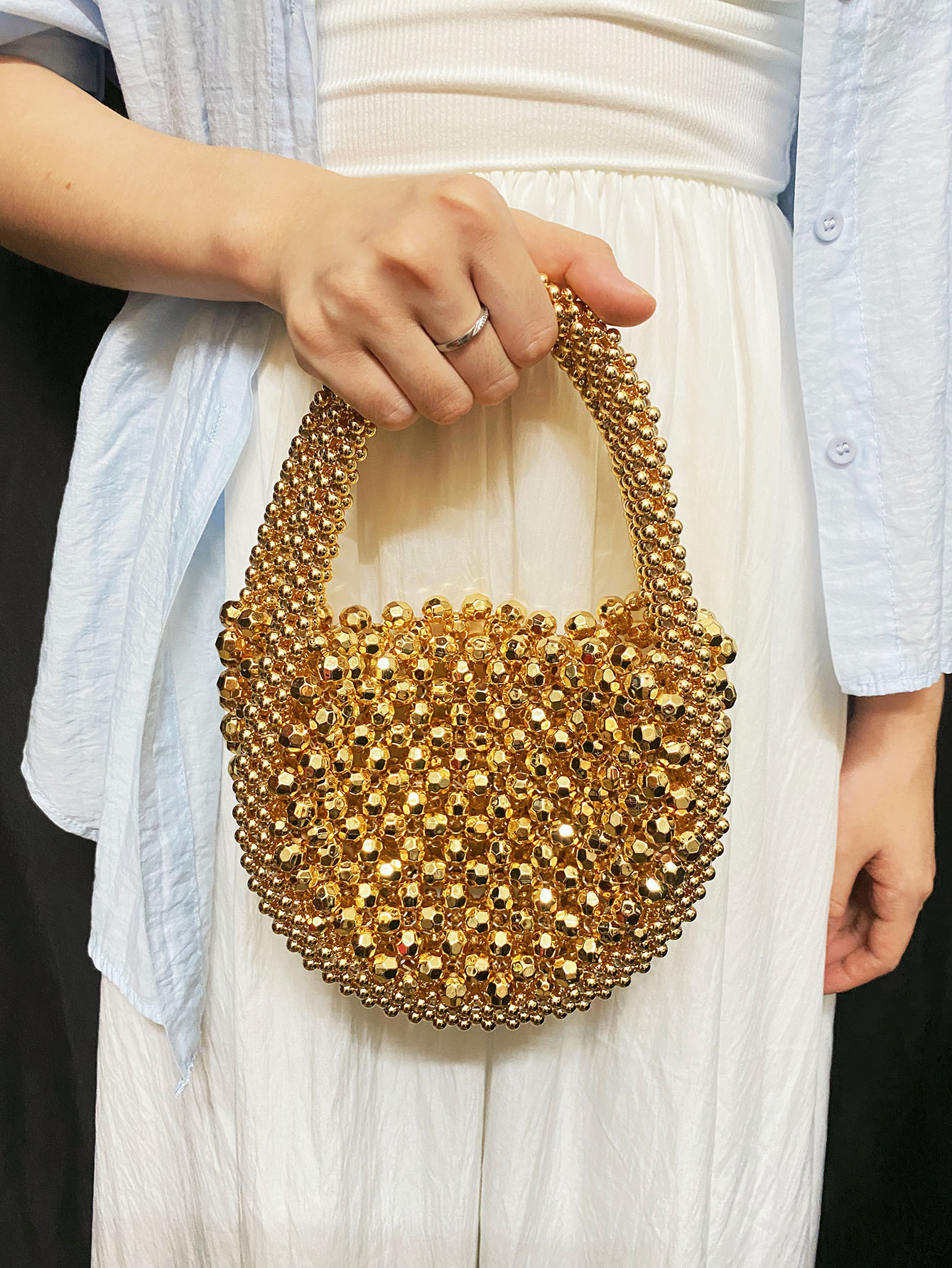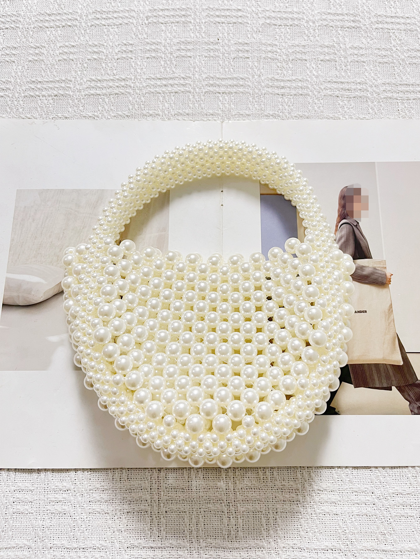 Light Luxury Handmade Beaded Bag Woven French Minority Half Month round Hand Dinner Bag