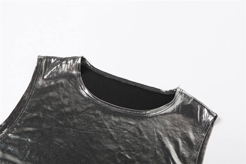 Metallic Coated Fabric Women Clothing Summer Bronzing Solid Color round Neck Sleeveless Cropped Sheath Skirt Outfit Women