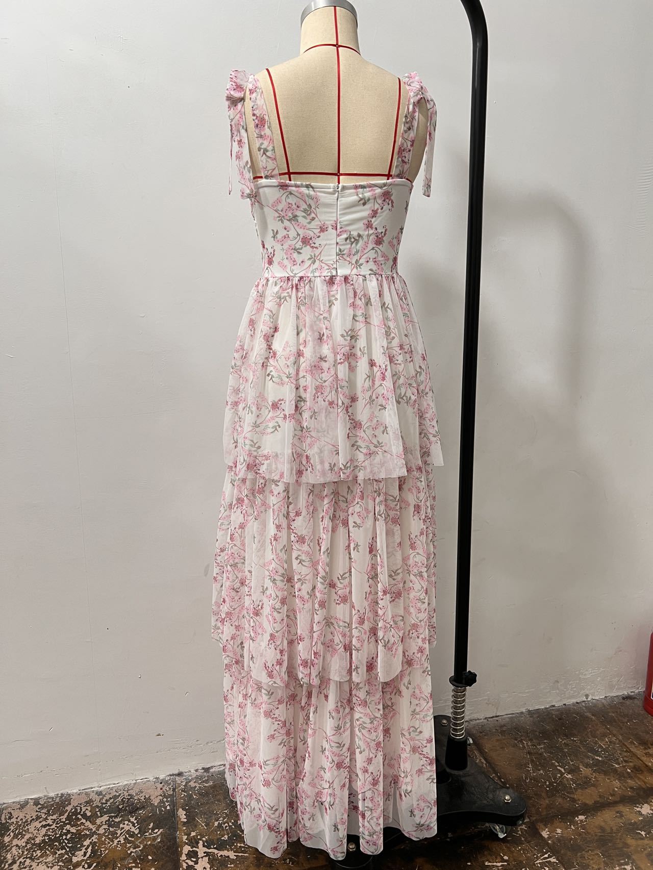 Middle East Sexy Sling Backless Cake Pink Floral Dress
