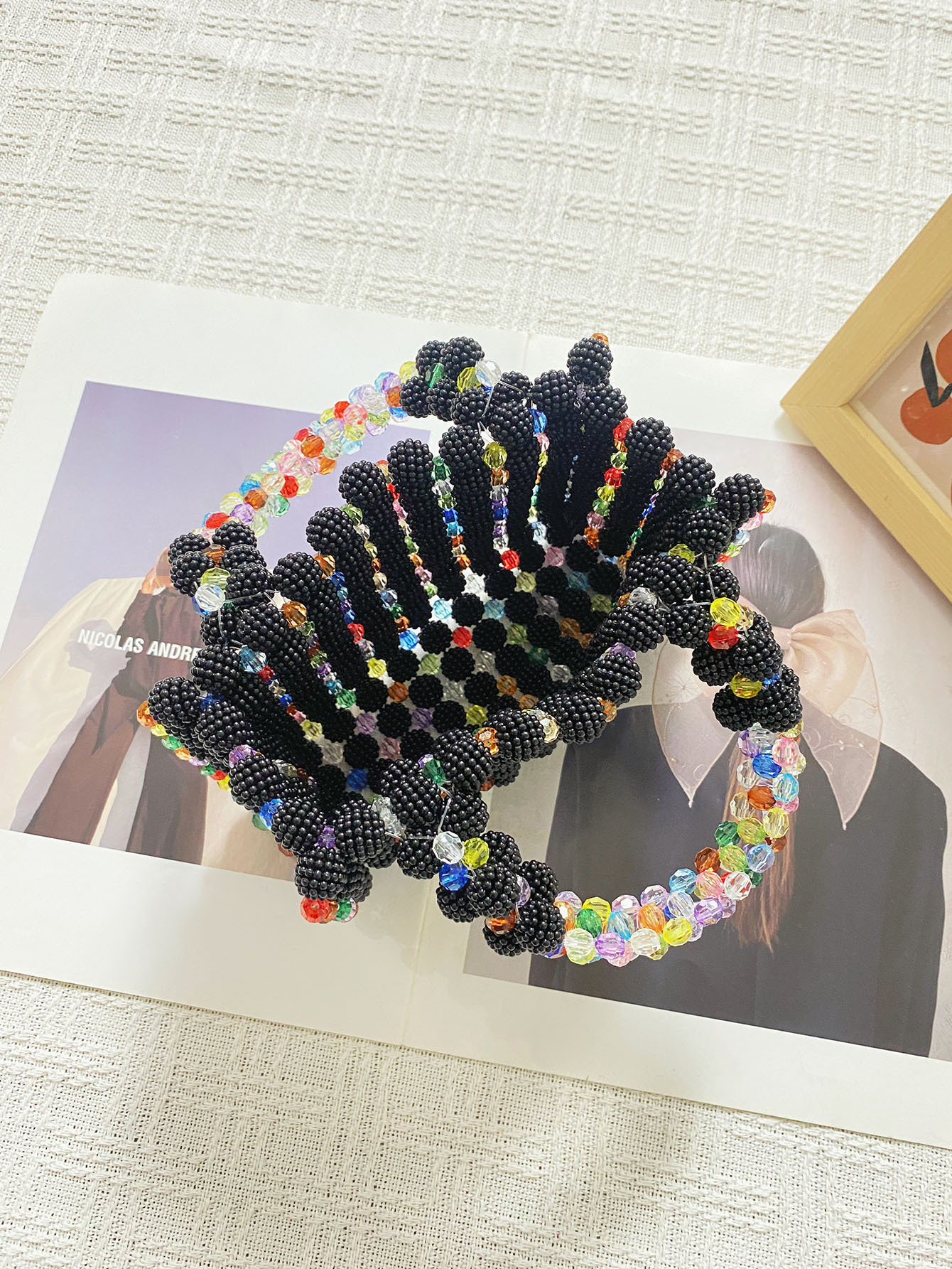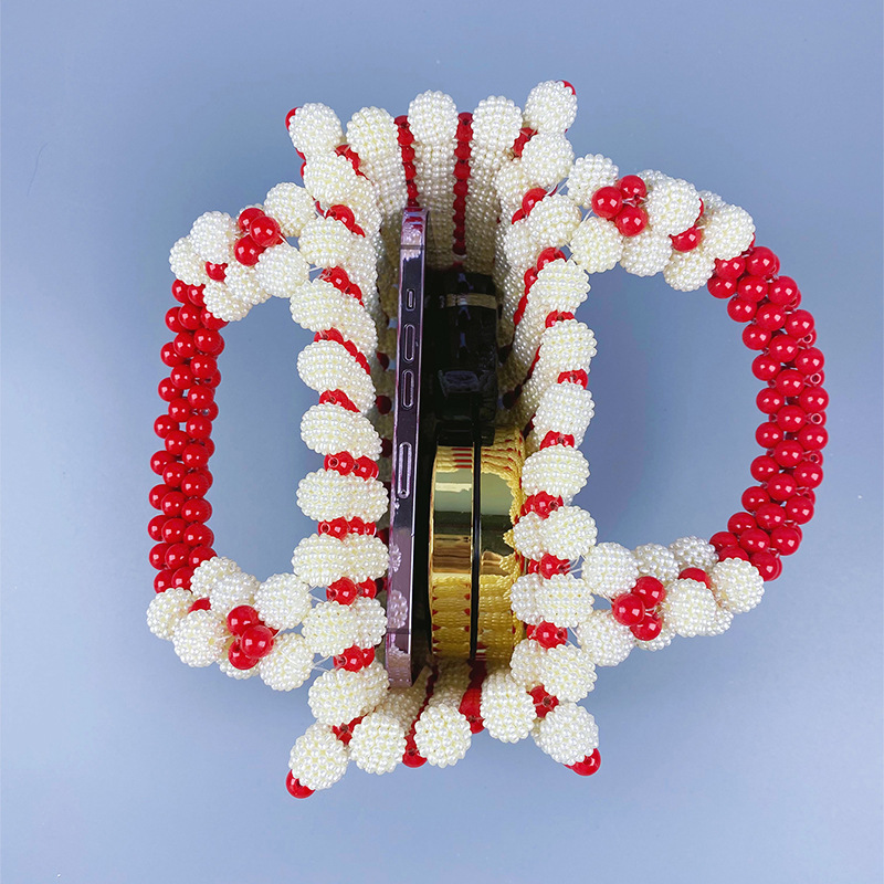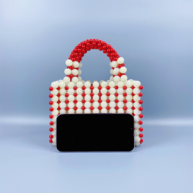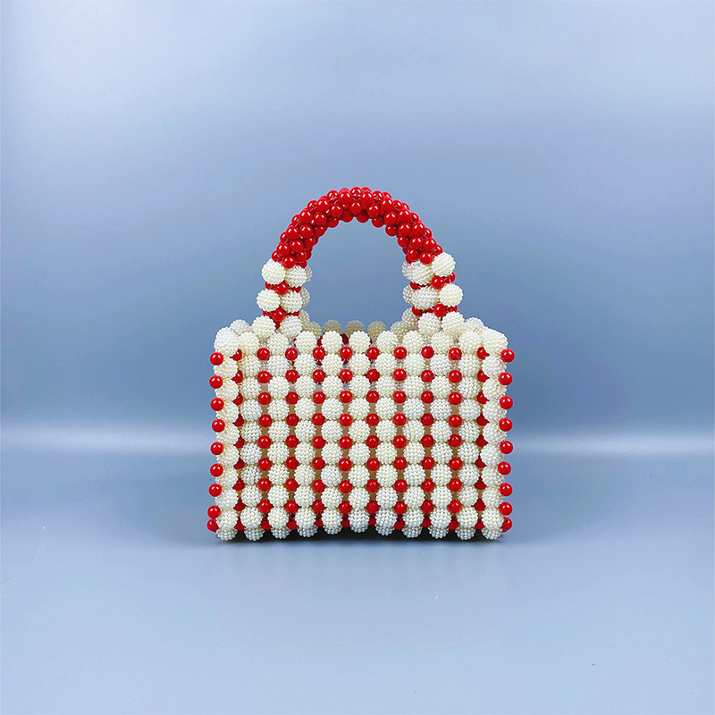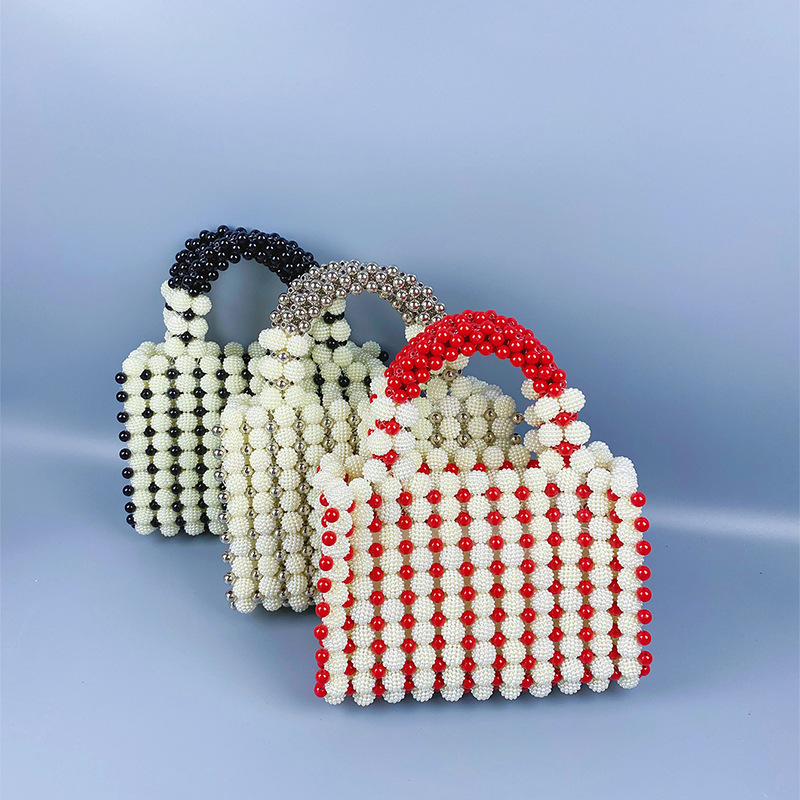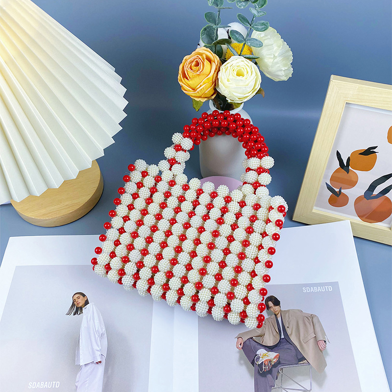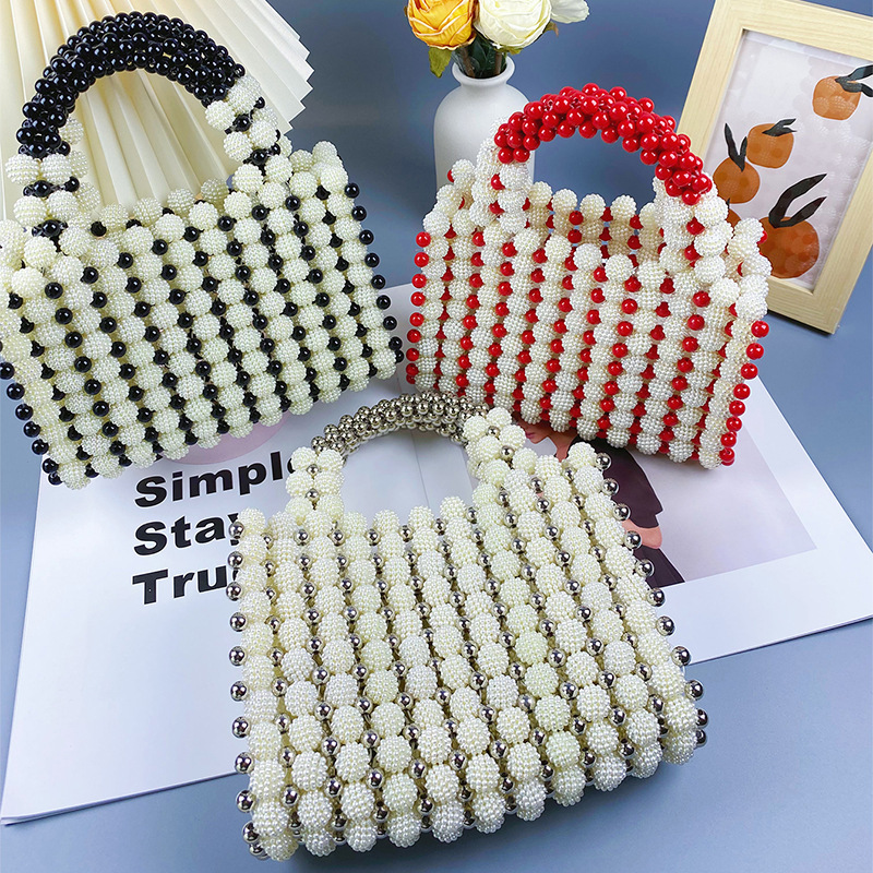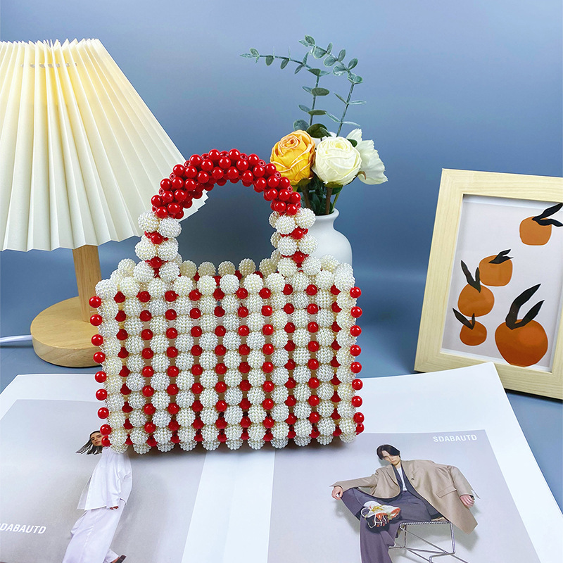 Niche Advanced Design Contrast Color Waxberry Pearl Grace Handbag Retro Casual Dinner Small Square Bag