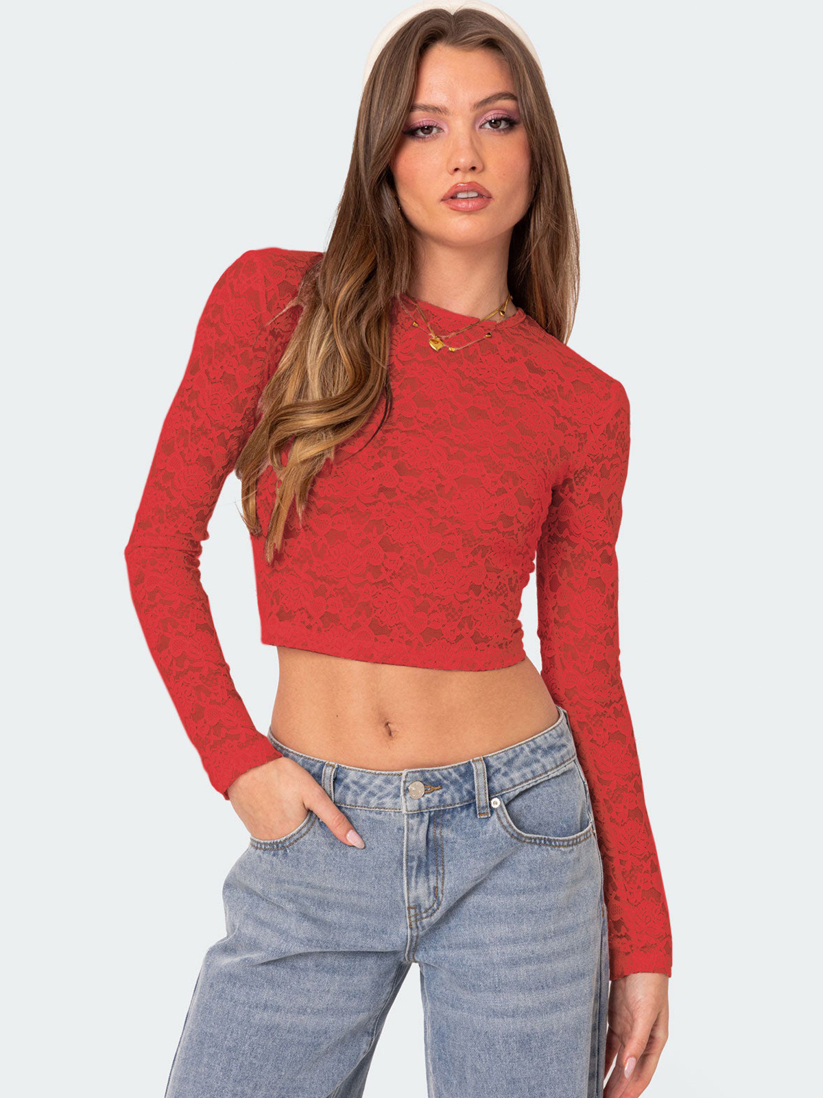 Private Clothes Sexy Lace Short Top Sexy Beautiful Slim Fit Long Sleeve T Shirt Women Summer